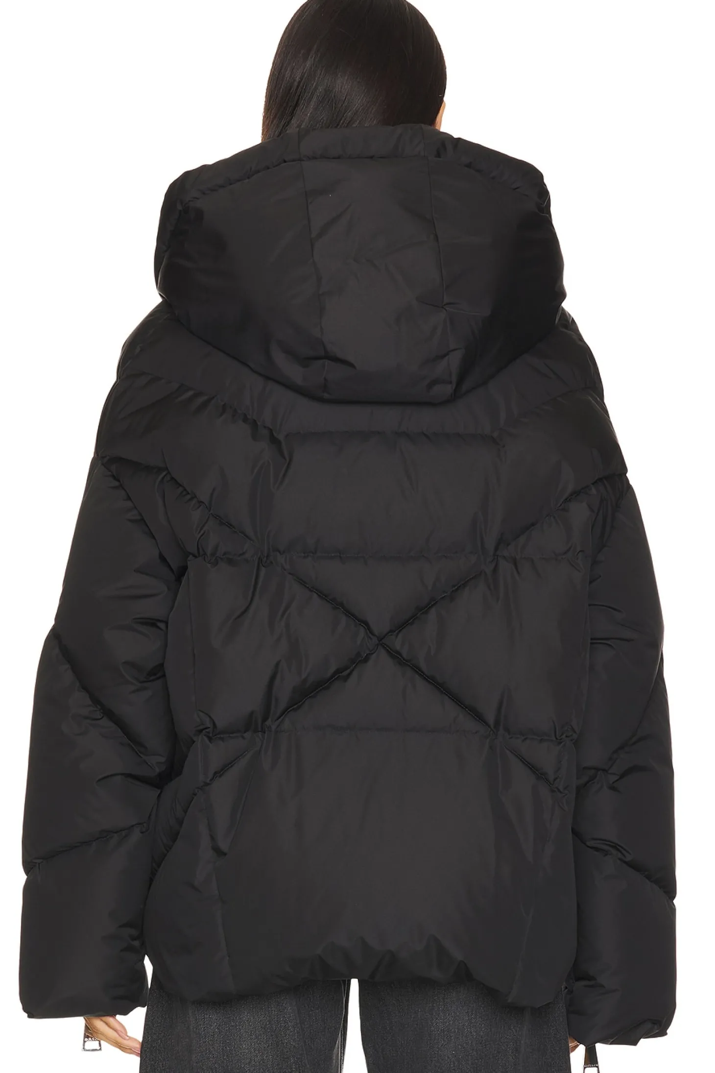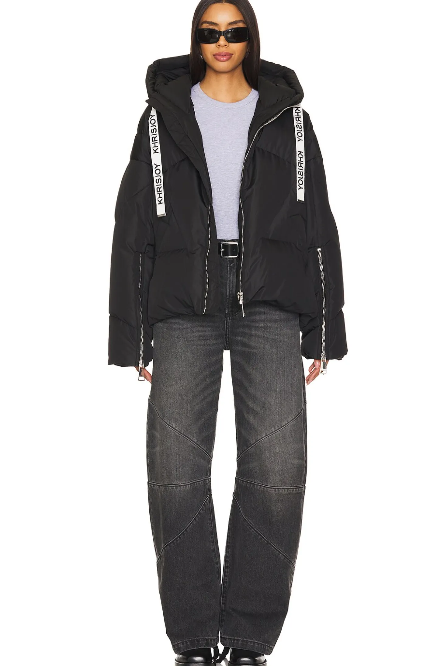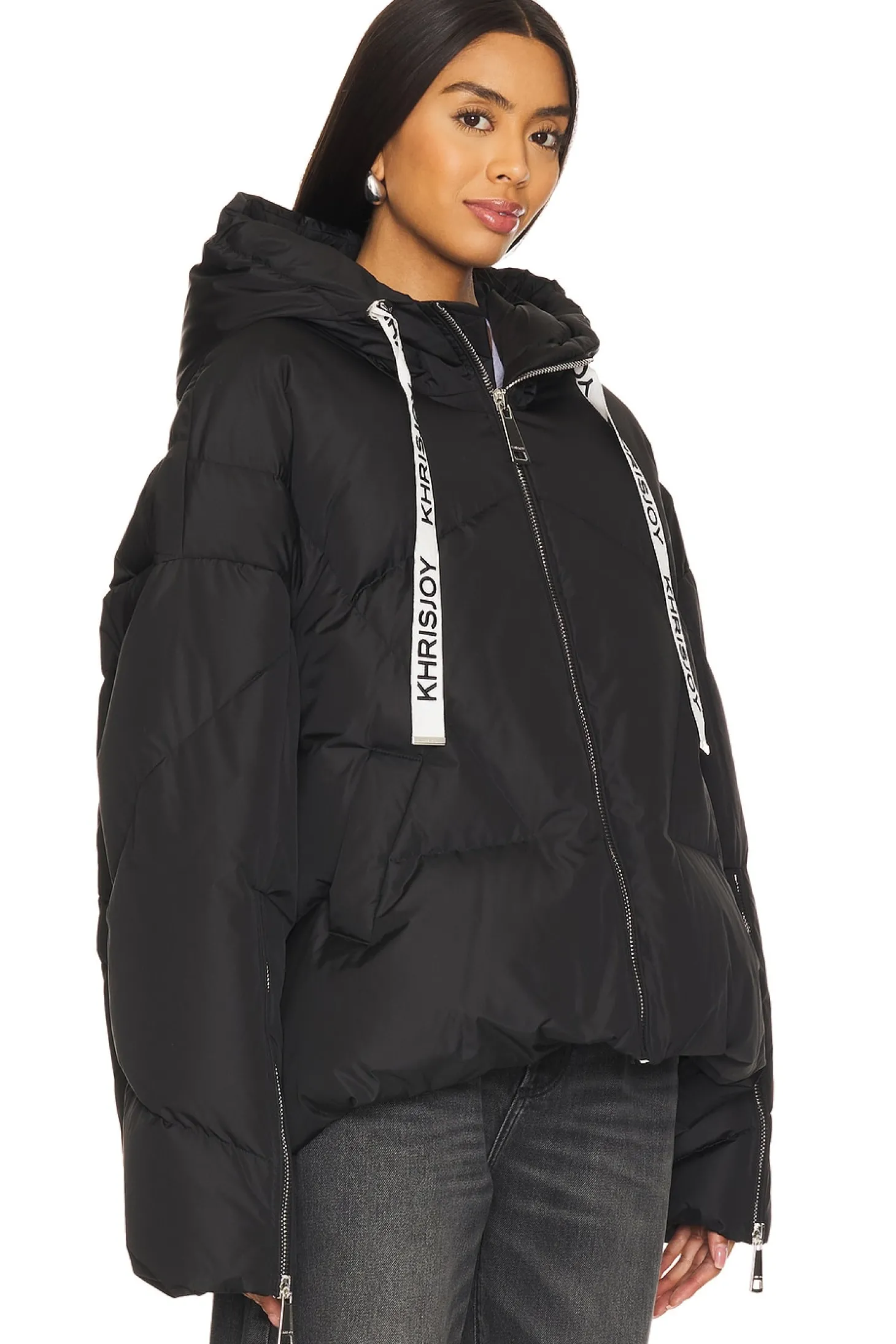 Self: 100% polyester Lining: 100% polyester Padding 2: 90% down 10% feathers.Made in Italy.Hand wash.Exposed front zipper closure.Side pockets.Hoodie with unique Khrisjoy drawstrings.Zip sleeves.Padded ripstop fabric with pull-cord waistband