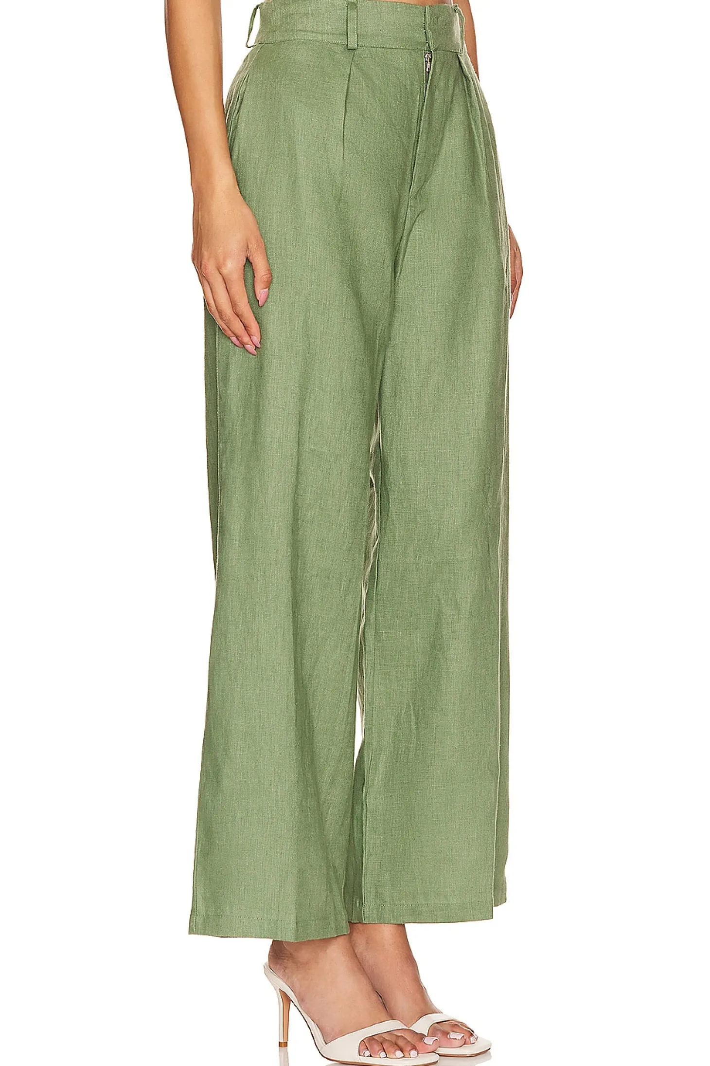 Self: 100% linen Lining: 100% rayon.Made in Indonesia.Hand wash.Zip fly with hook and bar closure.Side slip pockets.Elasticated back waist panel Pleated detail at waist.Lightweight linen fabric Item not sold as a set.22" at the knee narrows to 20" at the leg opening