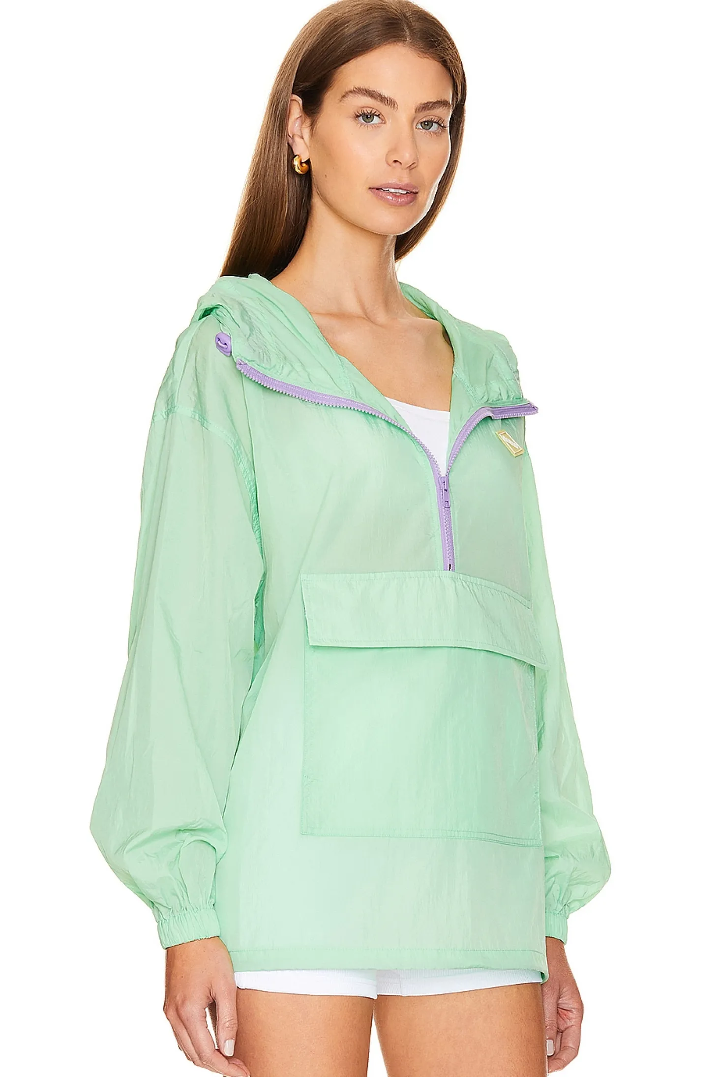 100% polyamide.Made in China.Machine wash.Partial front zipper closure.Attached drawcord hoodie.Front kangaroo and flap zipper pocket.Lightweight ripstop fabric