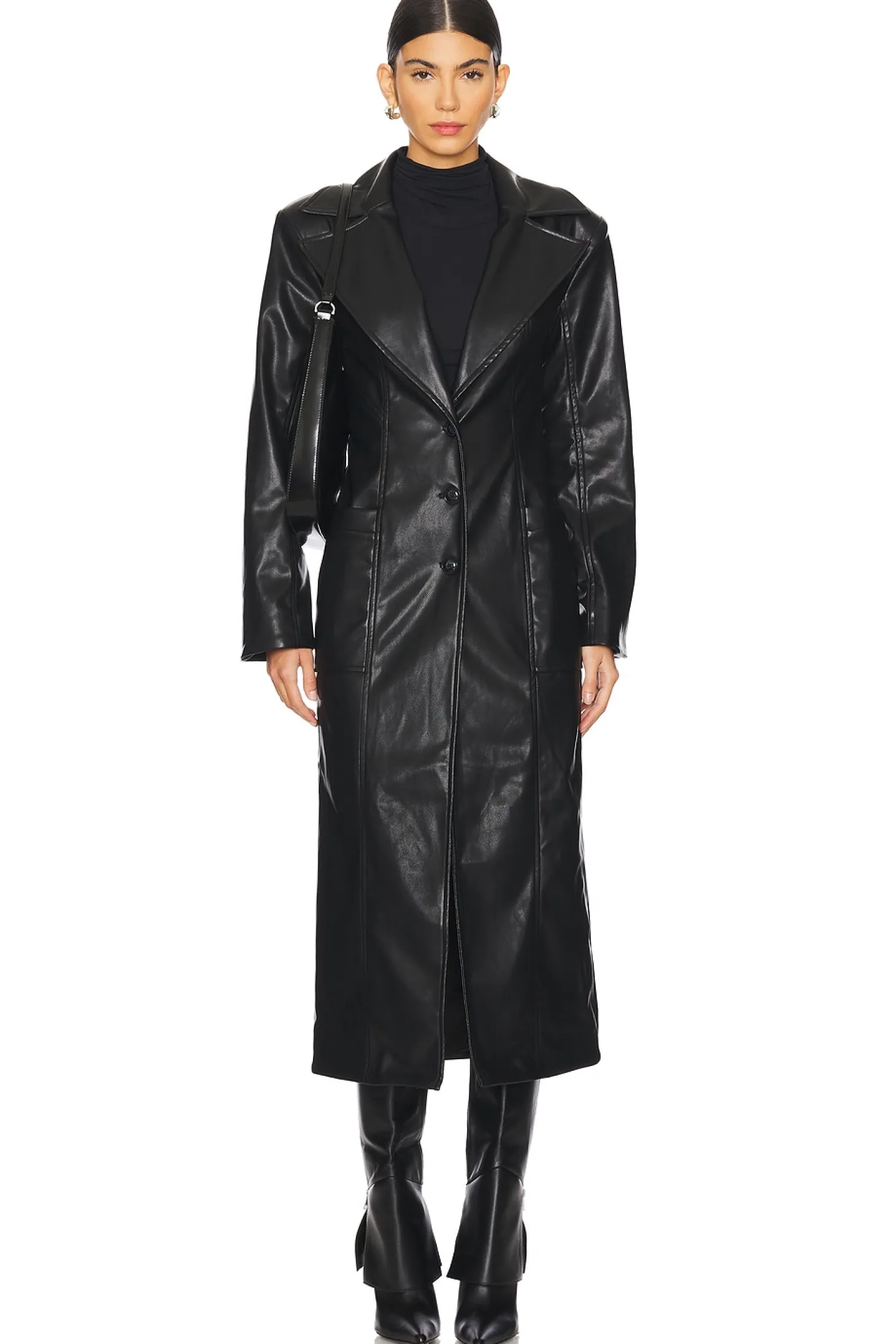 Self 1: 100% polyurethane Self 2: 100% polyester Lining: 93% polyester 3% elastane.Made in China.Hand wash.Front button closure.3-pocket design.Faux leather with padded shoulders