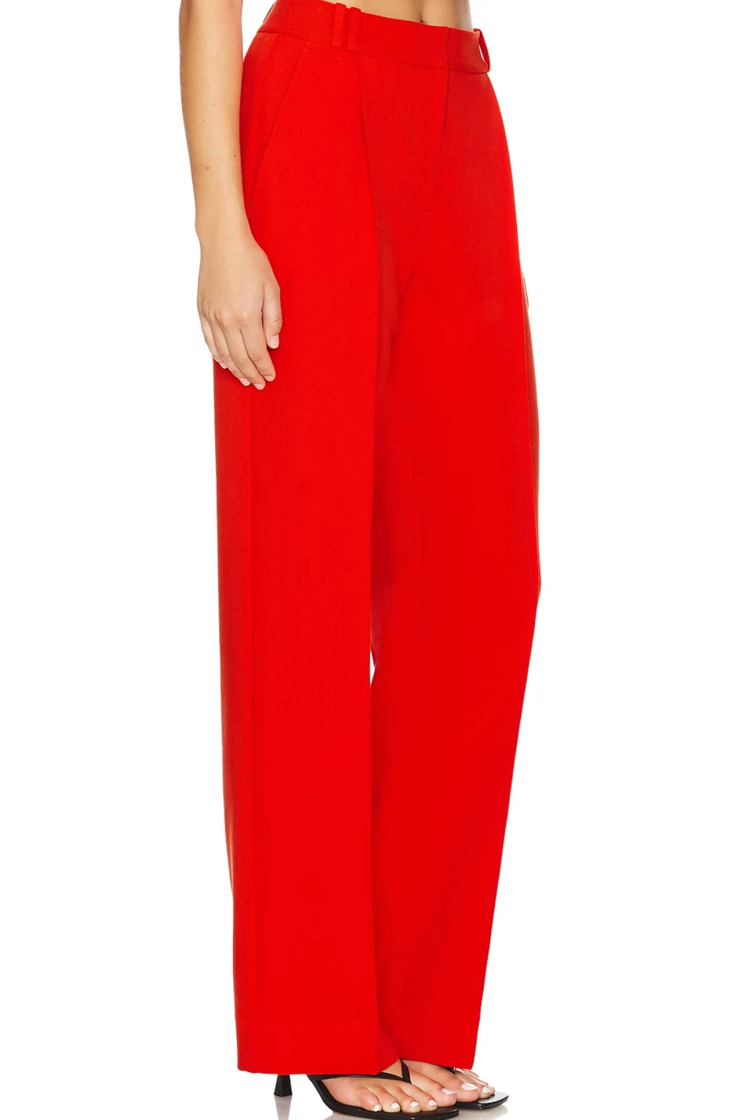 Self: 79% polyester 17% viscose 4% elastane Lining: 54% polyester 46% viscose.Made in China.Machine wash recommended.Zip fly with dual hook and bar closure.4-pocket styling.Front pintuck detailing.Item not sold as a set.20" at the knee narrows to 19" at the leg opening