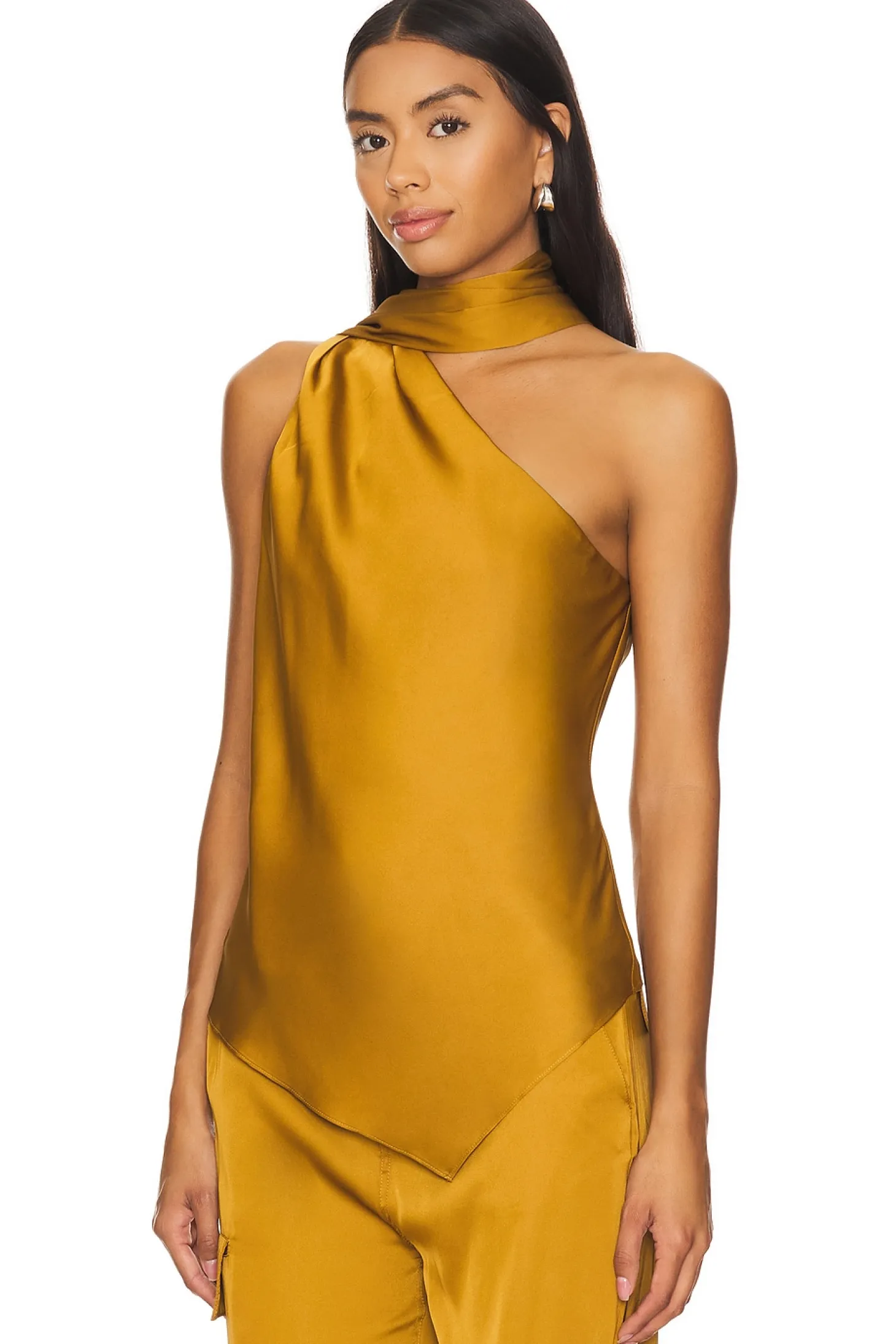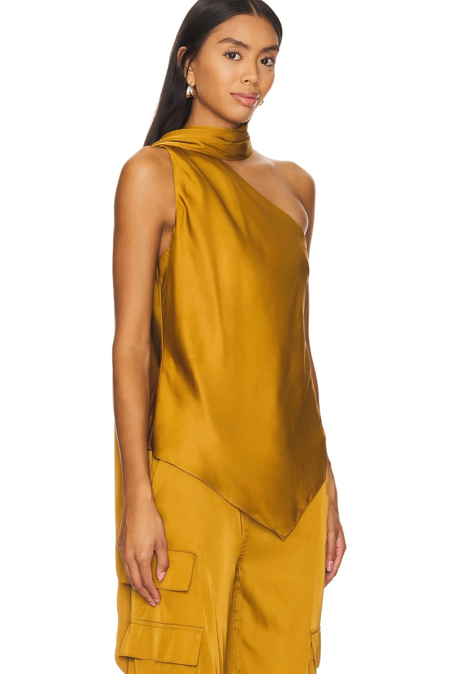 Self & Lining: 100% polyester.Made in China.Dry clean only.Pull-on styling.One-shoulder design with wraparound scarf.Satin fabric with handkerchief hem.Item not sold as a set