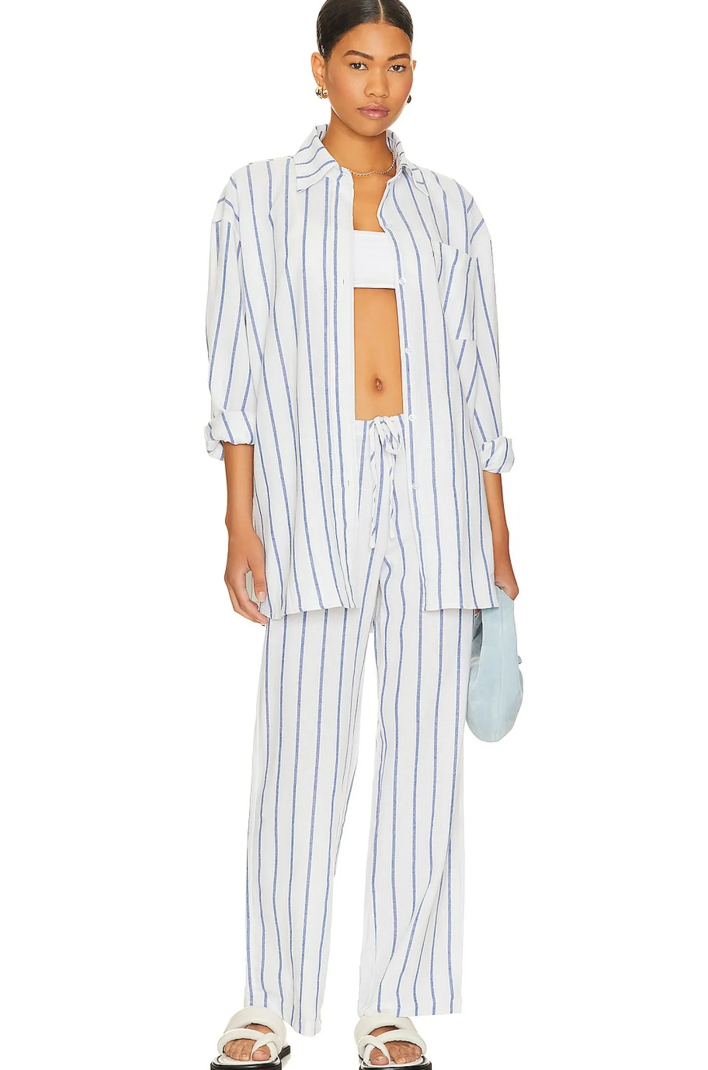 Self 1: 70% cotton 30% linen Self 2: 100% polyester.Made in China.Hand wash.Front button closure.Breast slip pocket.Lightweight linen fabric.Item not sold as a set