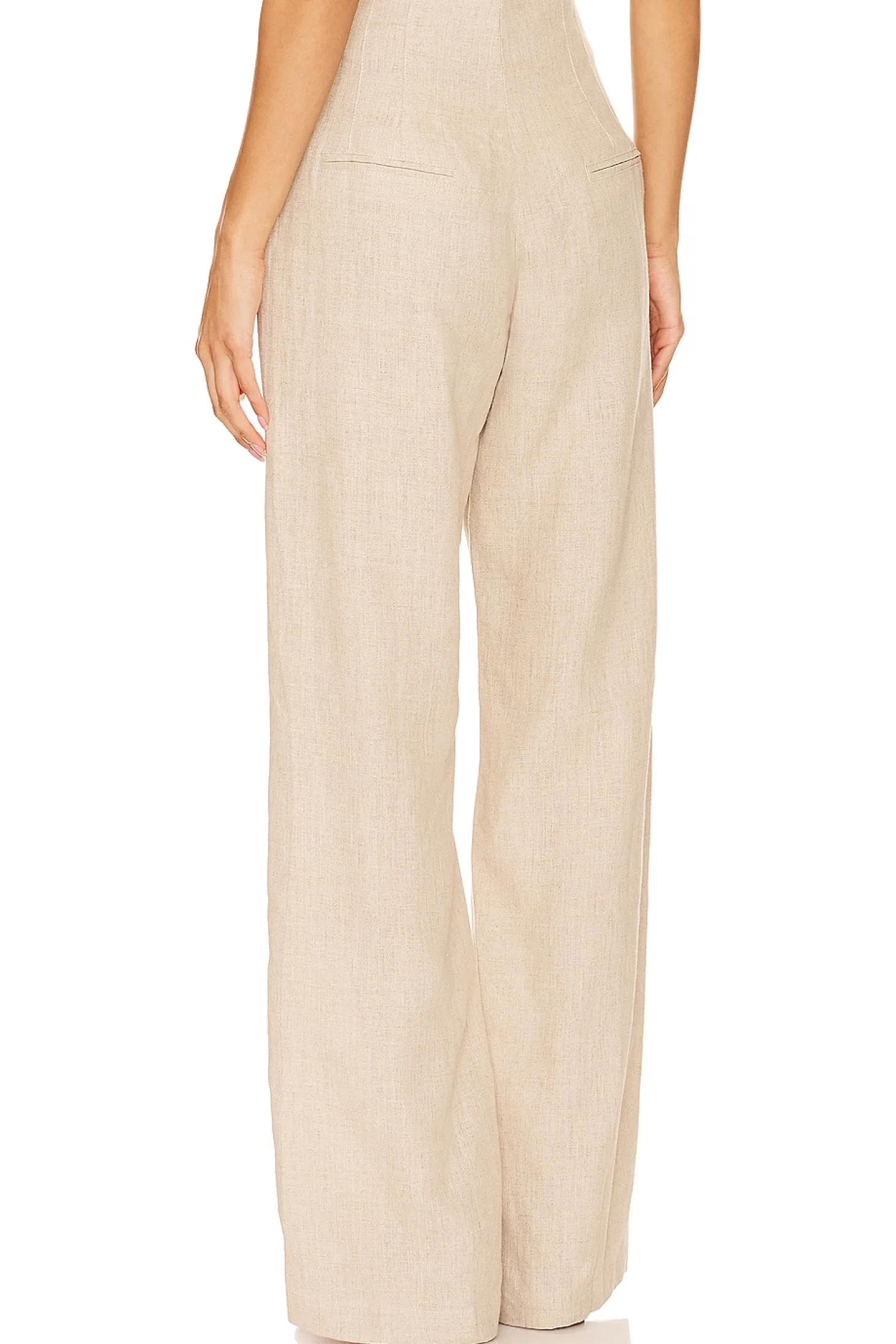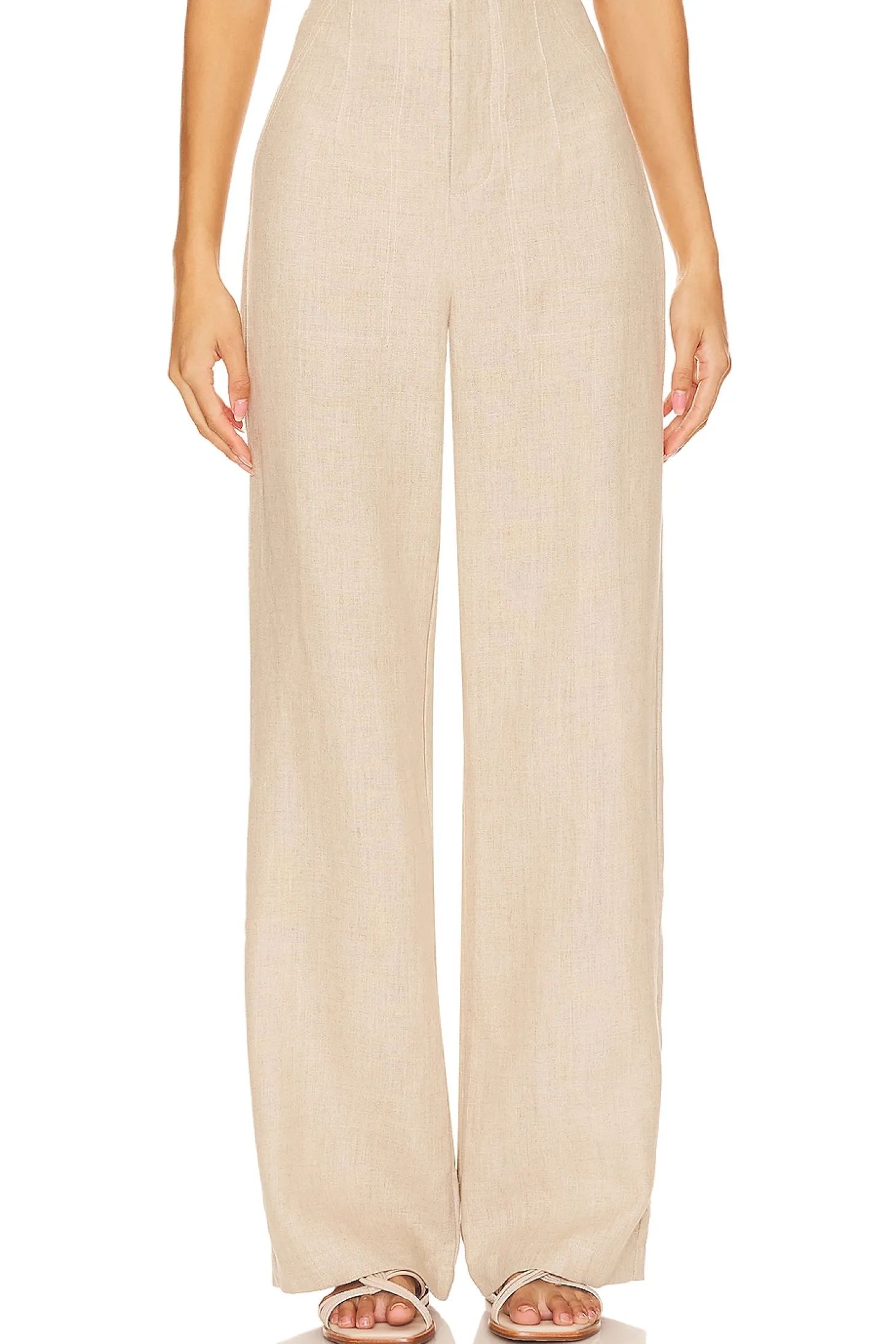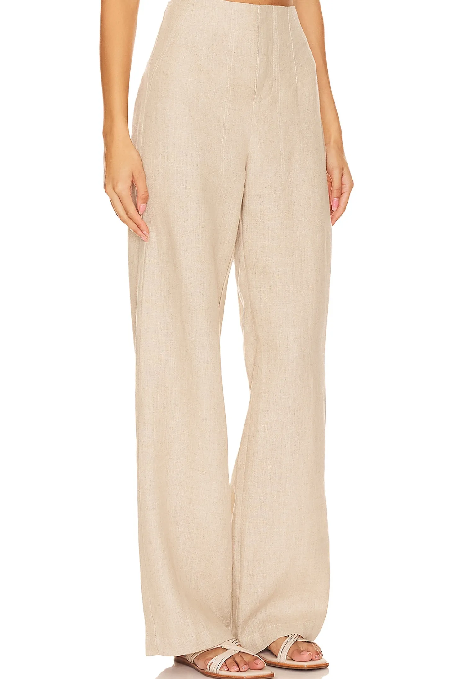 Self: 100% linen Lining: 100% rayon.Made in Indonesia.Hand wash.Zip fly with button closure.Back slip pockets.Midweight linen fabric.Item not sold as a set.20" at the knee narrows to 18" at the leg
