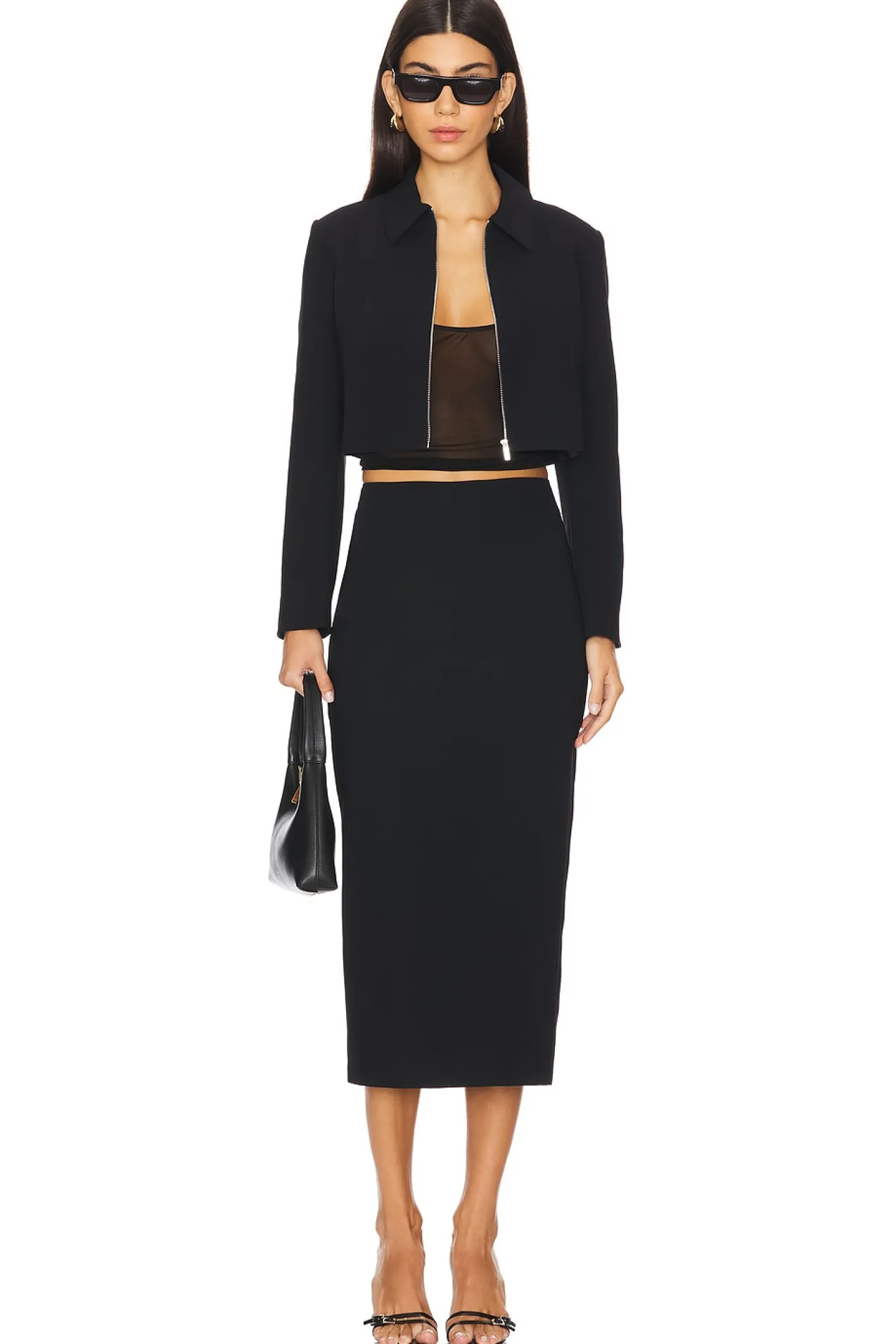 Self: 100% polyester Lining: 100% polyester.Made in China.Dry clean only.Front zipper closure.Item not sold as set.Crepe fabric