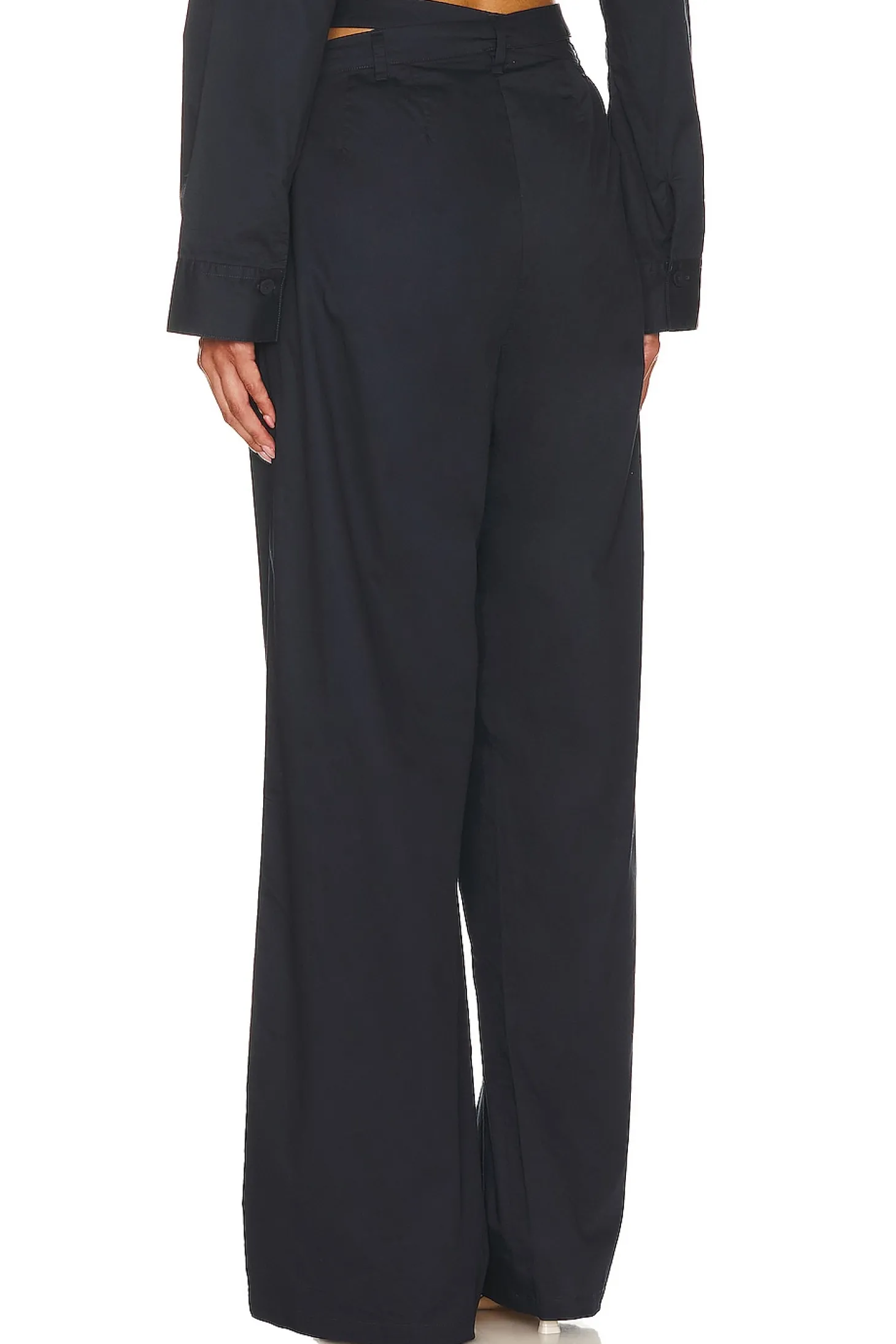 Polyester blend.Imported.Dry clean recommended.Hidden side zipper closure.Crisscross cross waist straps.Side slant pockets.Crepe jersey fabric Item not sold as a set.24" at the knee narrows to 22" at the leg opening