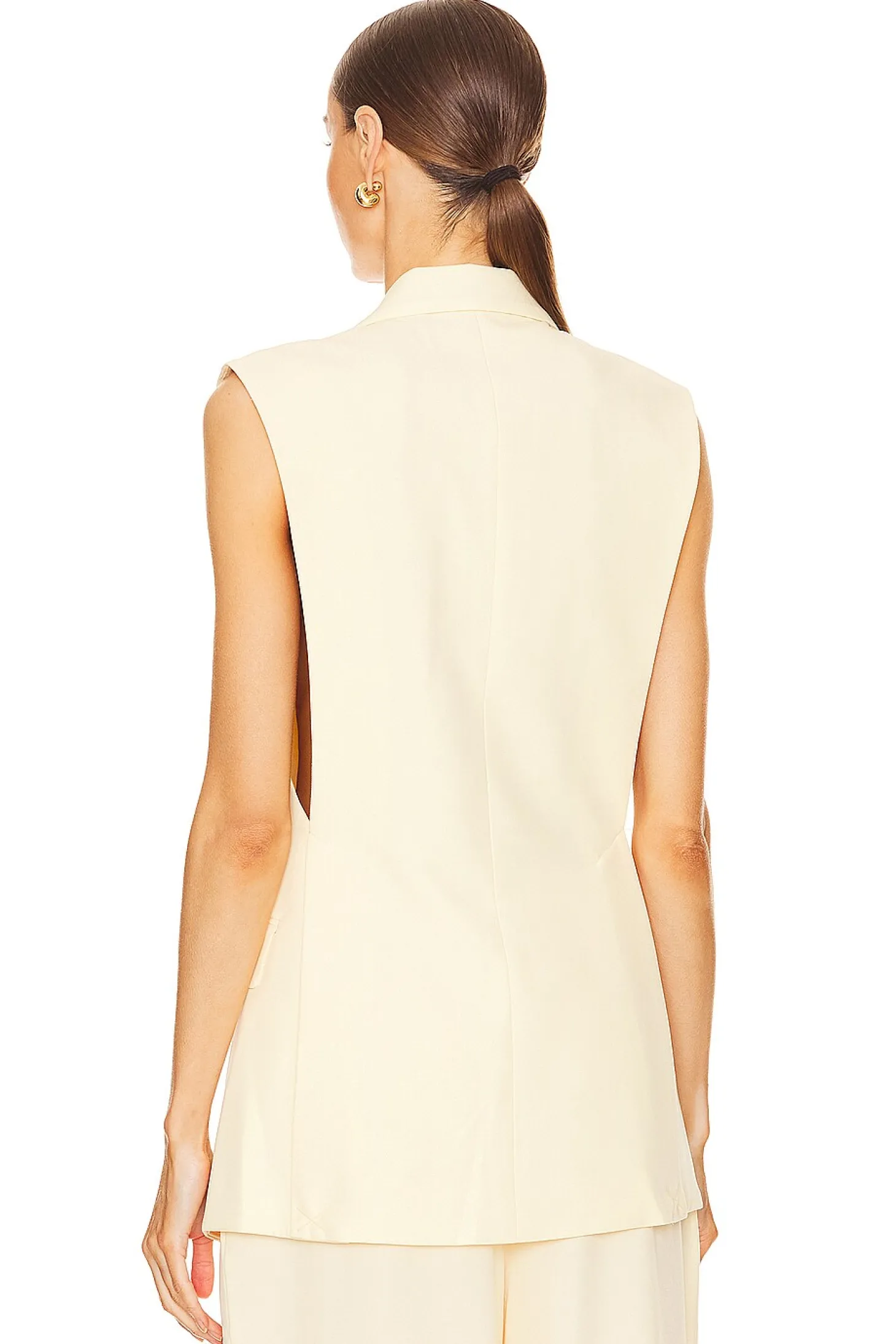 Self: 96% polyester 4% spandex Lining: 100% polyester.Made in China.Dry clean only.Front singular button closure.Side flap welt pockets.Lightweight twill fabric.Item not sold as a set