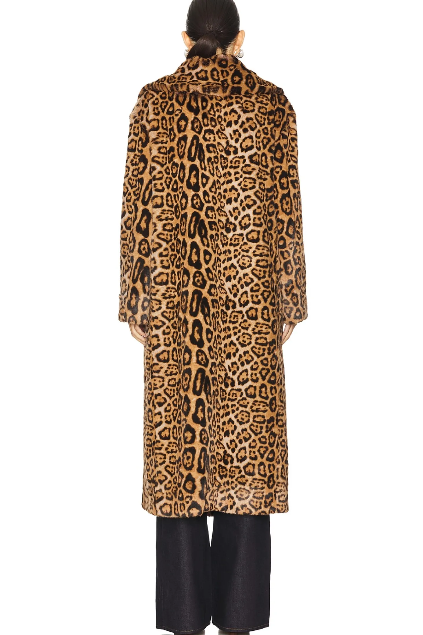 Self: Faux Fur: 100% polyester Lining: 100% polyester.Made in China.Dry clean only.Double breasted closure.Heavyweight faux fur exterior