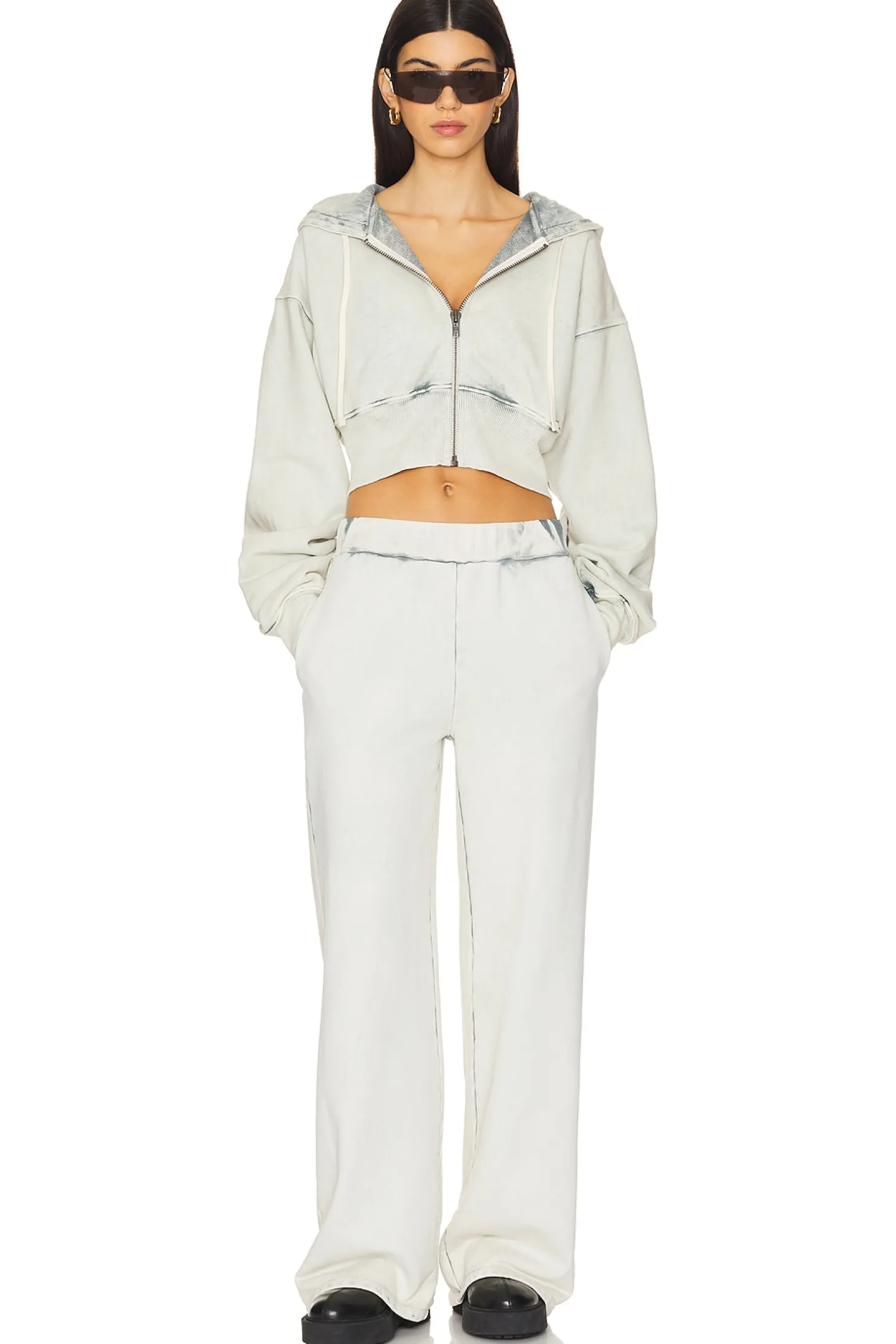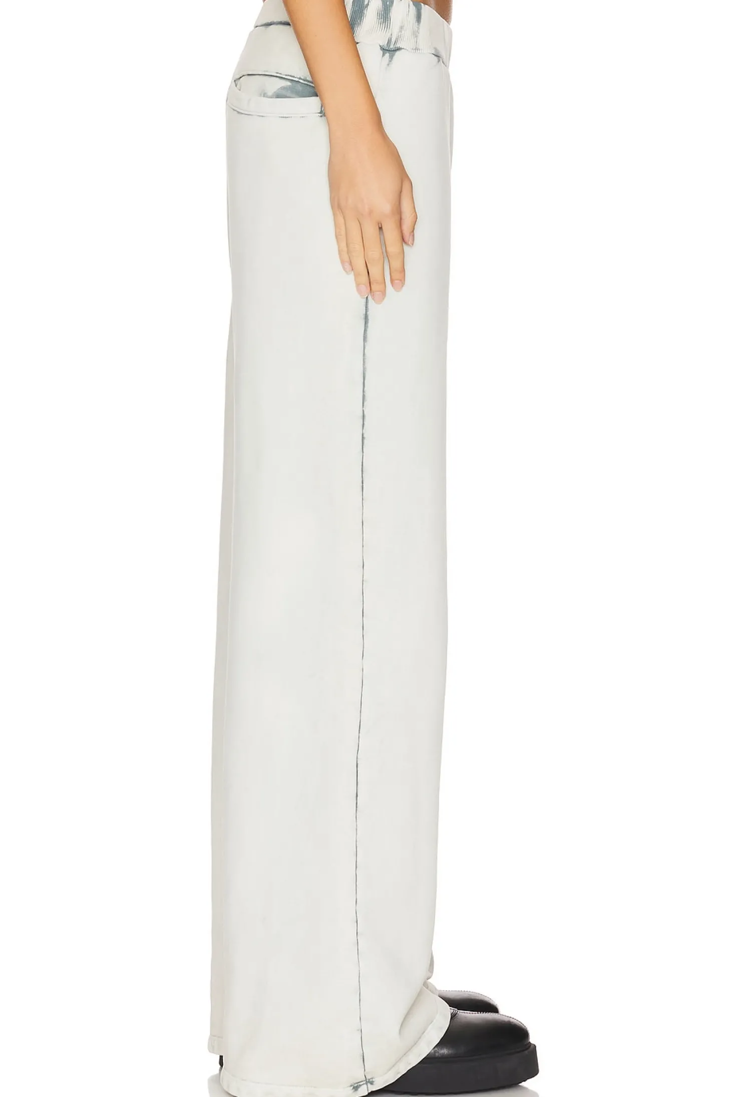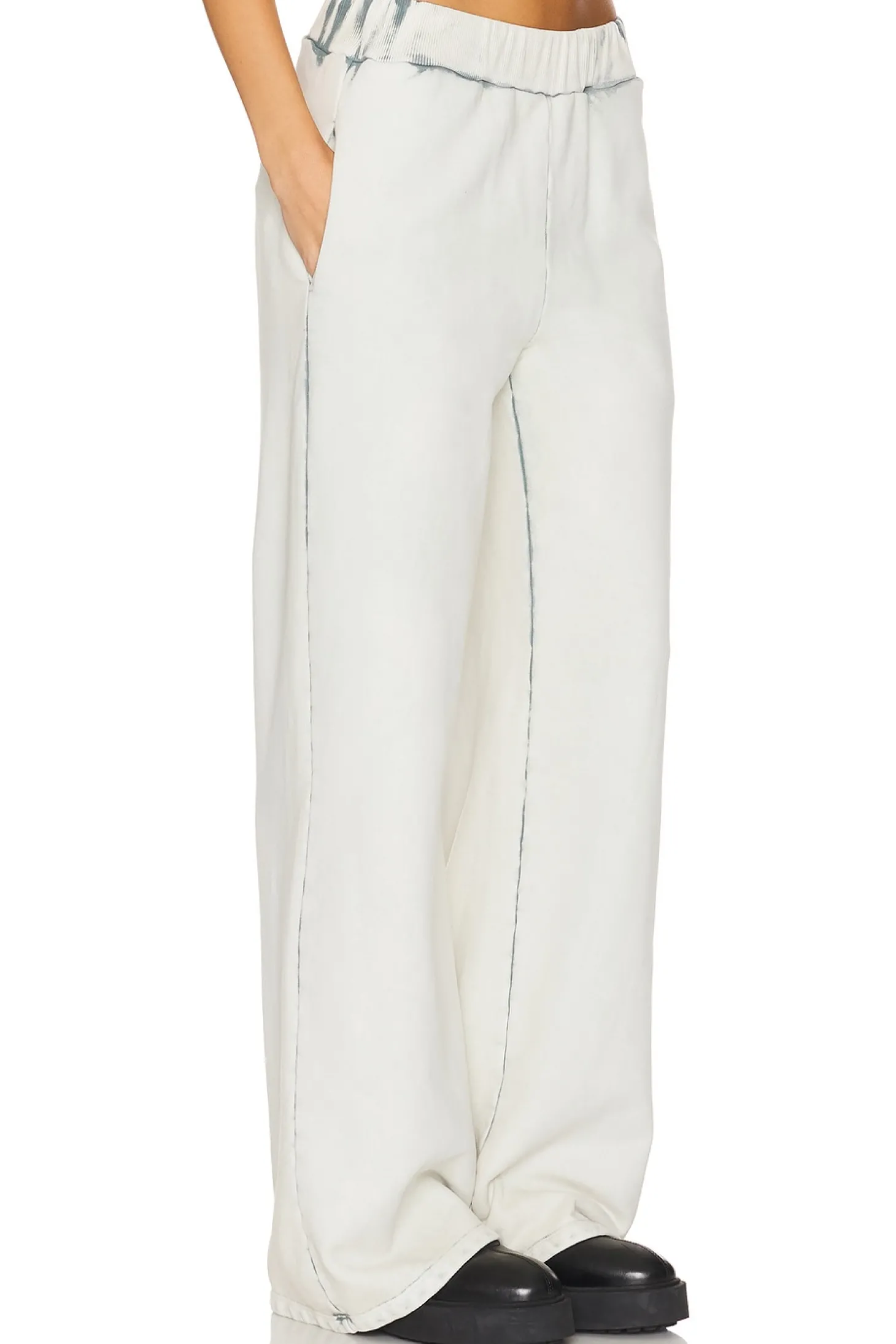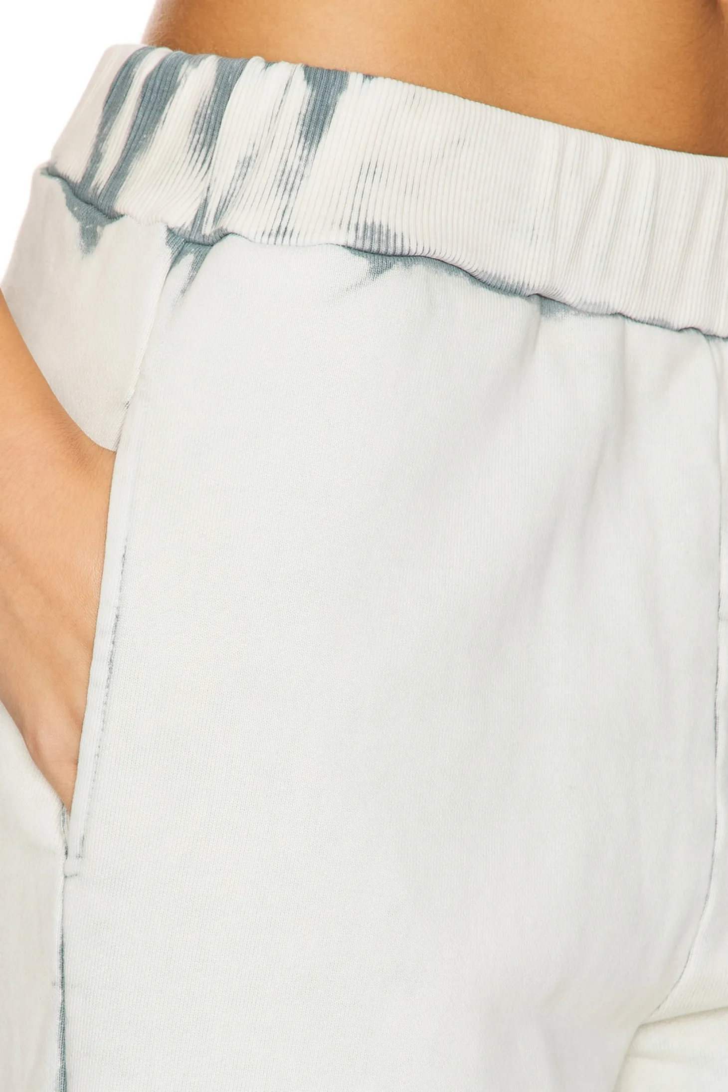 100% cotton.Made in USA.Machine wash.Pull-on styling with elastic waistband.Side slit pockets.Singular back welt pocket.French Terry fabric.22" at the knee breaks to 24" at the leg opening