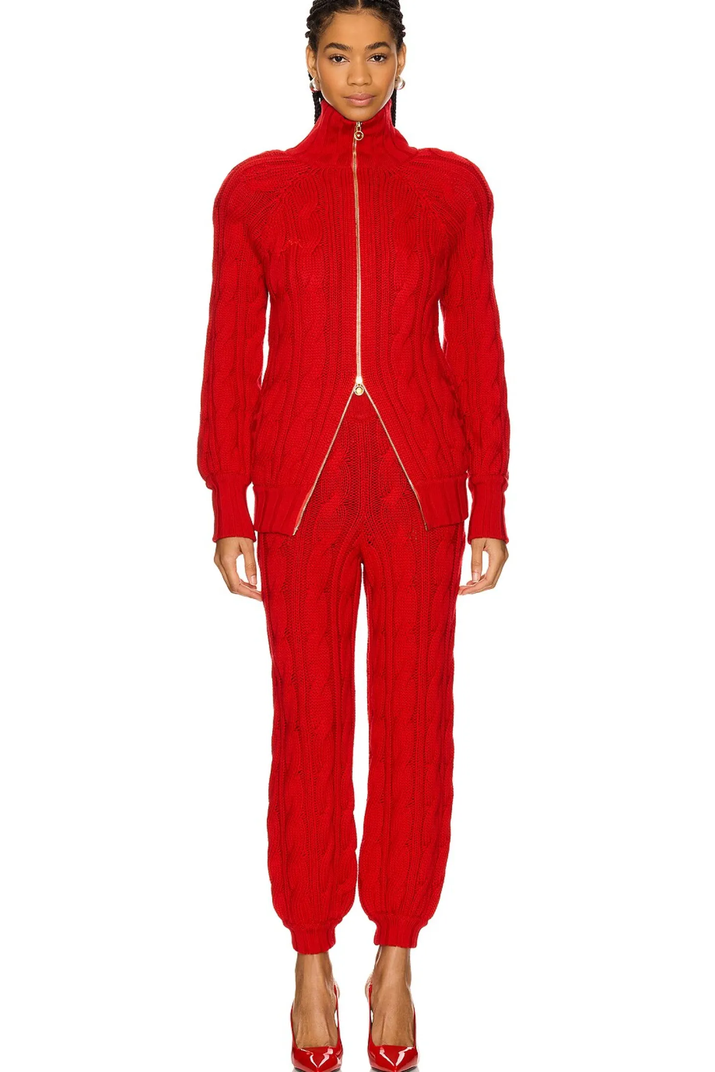 100% virgin wool.Made in Italy.Dry clean only.Pull-on styling.elasticized waistband.Heavyweight knit fabric Item not sold as a set.14" at the knee narrows to 8" at the leg opening