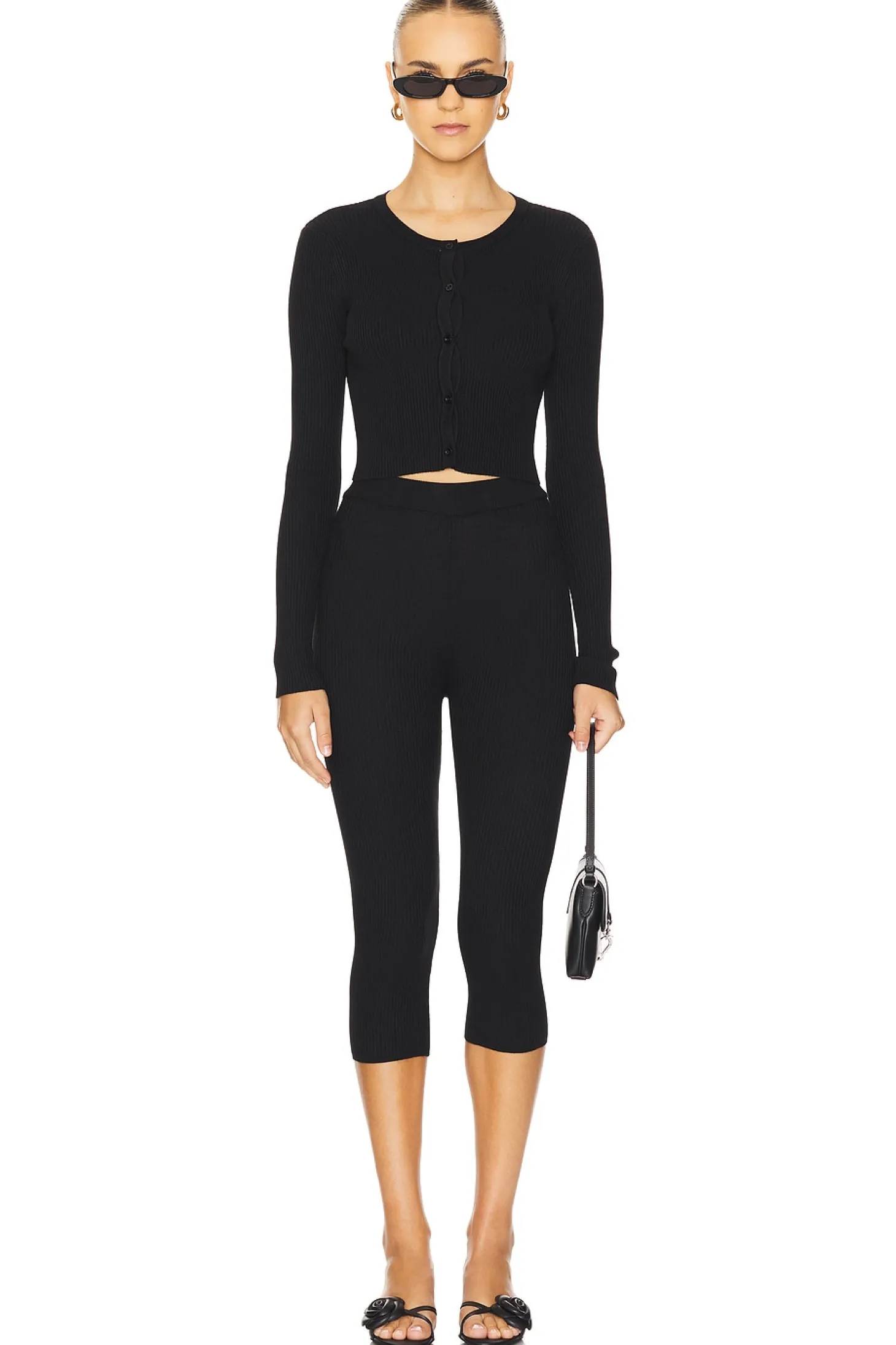 83% viscose 15% nylon 2% elastane.Made in China.Hand wash.Top has front button closure Bralette and pants are pull-on styling.Bralette has adjustable shoulder straps.Ribbed knit fabric design.Sold as a set