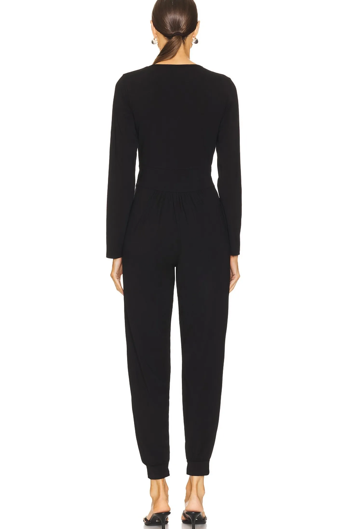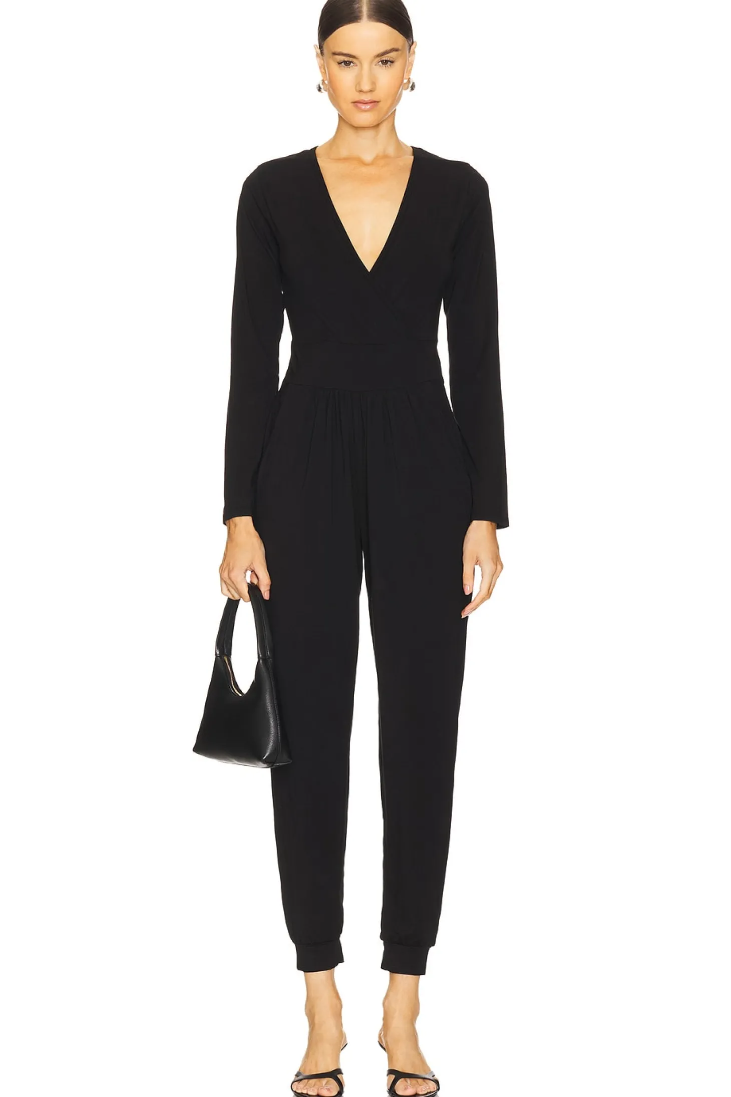 54% cotton 44% modal 2% spandex.Made in China.Machine wash.Pull-on styling.Side pockets.Deep v-neck design.Lightweight jersey fabric.20" at the knee narrows to 9" at the leg opening