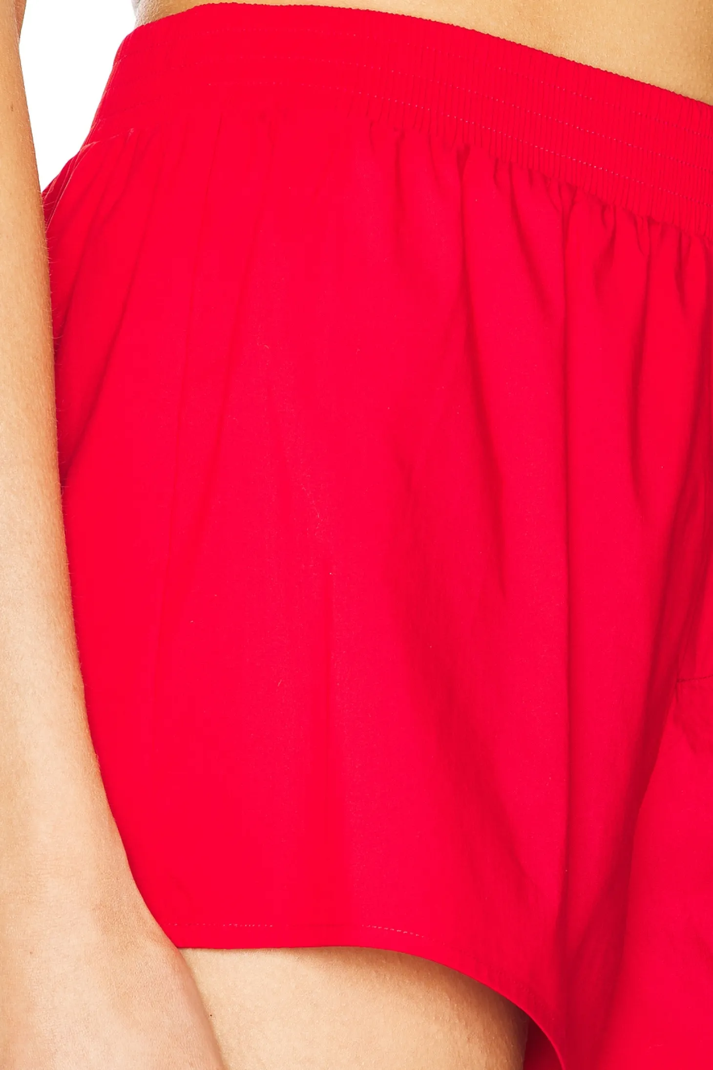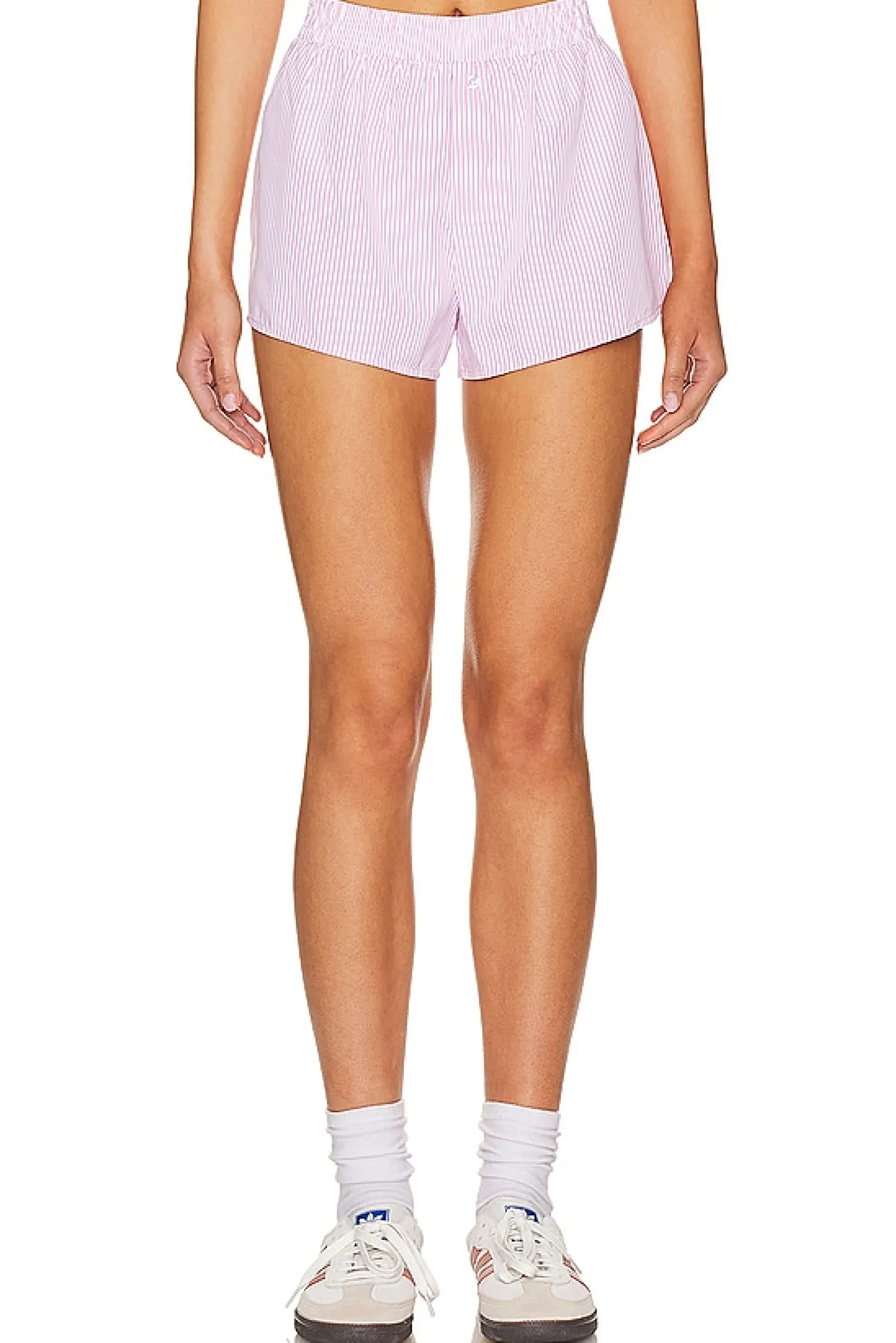Poplin textile.Imported.Machine wash recommended.Pull-on styling.Poplin fabric.Shorts measure approx 11" in length