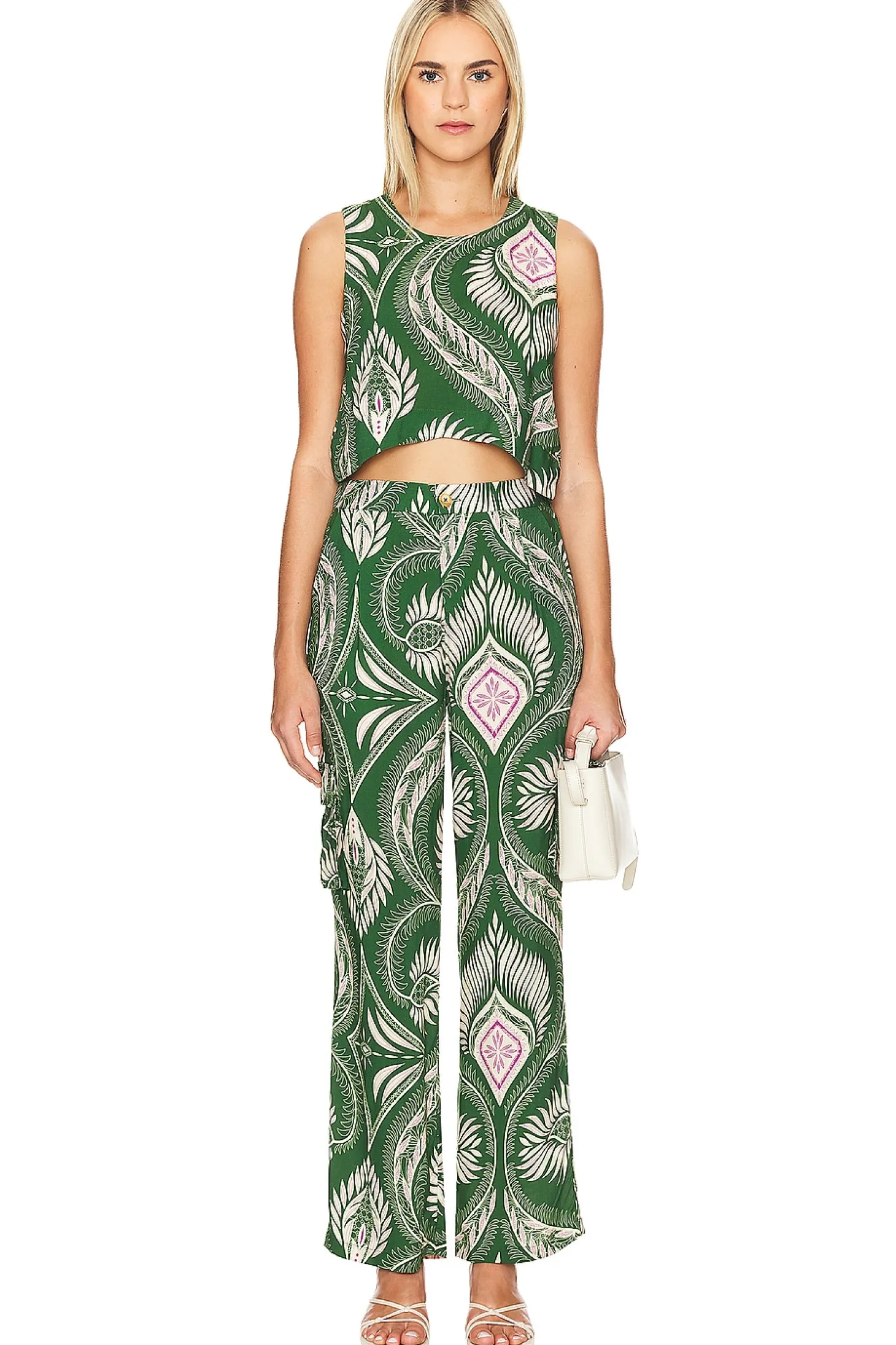 Self: 100% viscose.Made in Columbia.Hand wash.Neck button closure