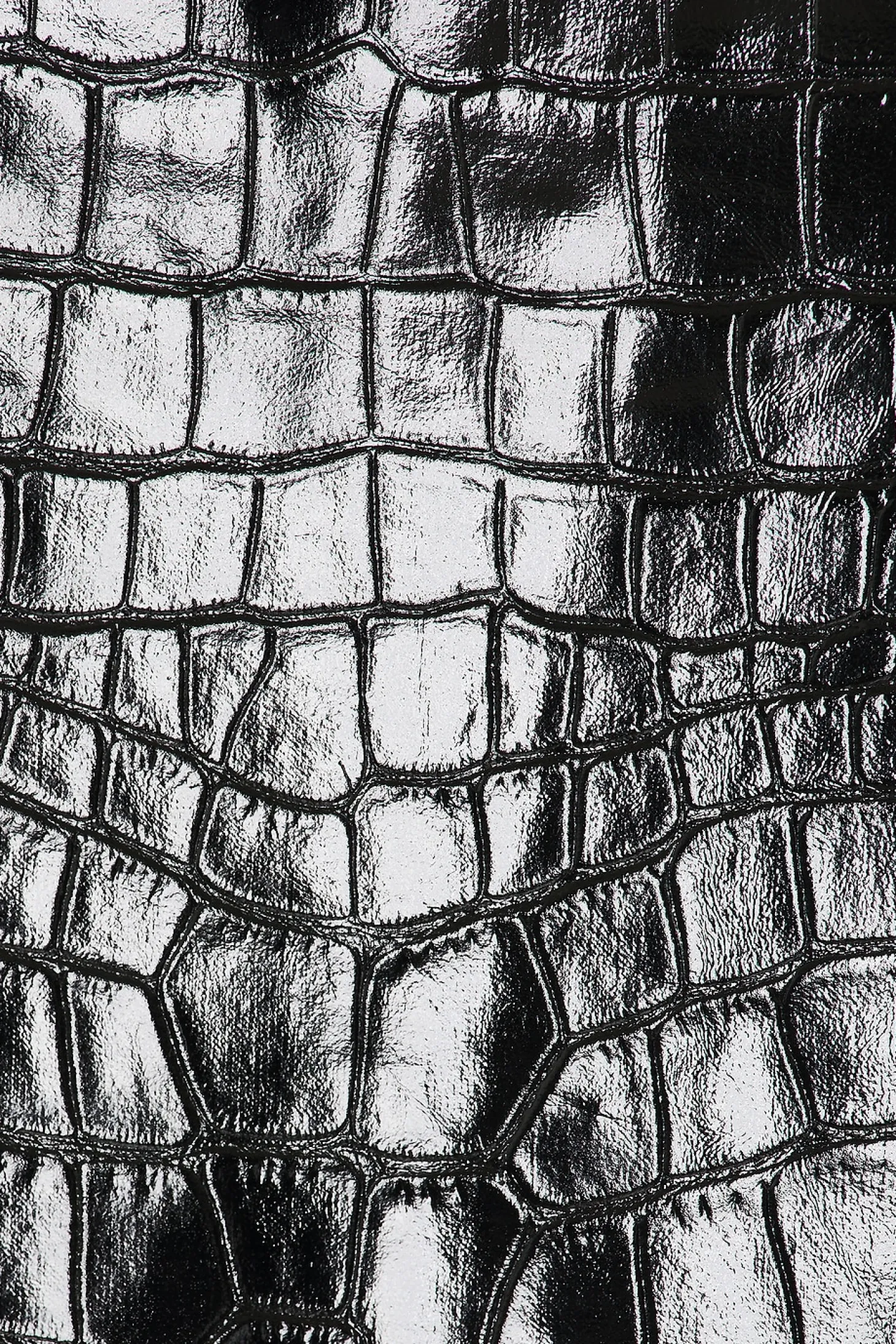 56% recycled polyester 44% polyurethane.Made in Ukraine.Dry clean only.Zip fly with button closure.4-pocket design.Lightweight hi-shine patent faux leather fabric.Laser cut hem Item not sold as a set.16" at the knee and 16" at the leg opening