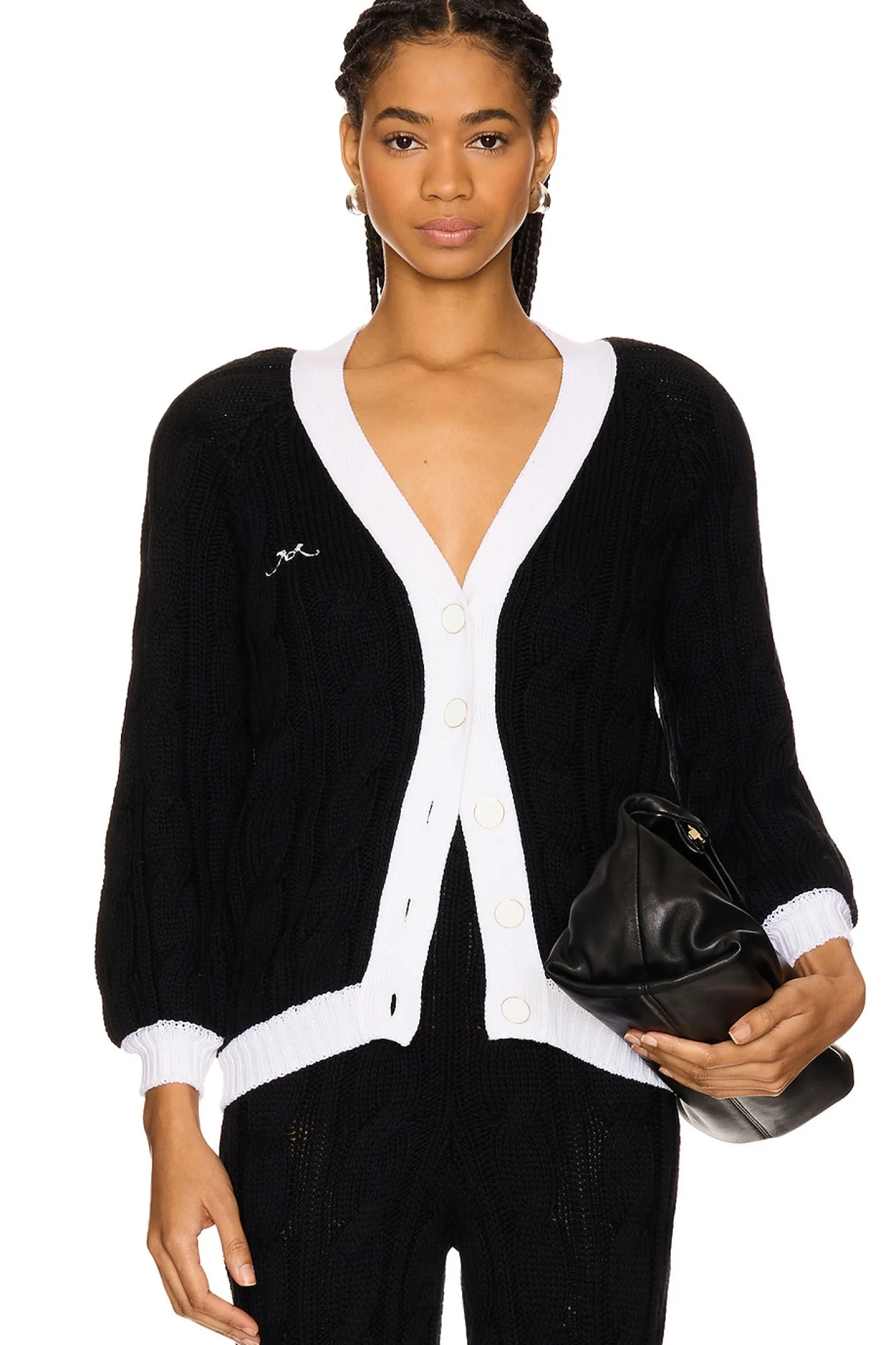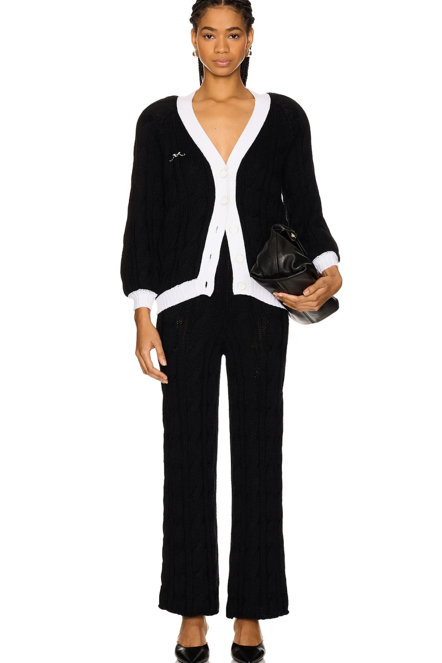 100% virgin wool.Made in Italy.Dry clean only.Front button closure.Front embroidered logo detail Padded shoulders and ribbed trim.Heavyweight knit fabric Item not sold as a set