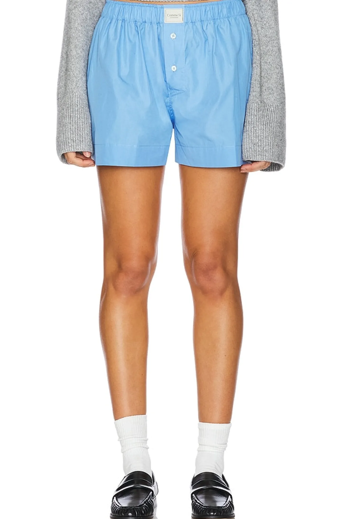 100% cotton.Made in Canada.Machine wash.Elastic waistband with brand logo.Faux button fly.Airy fabric.Shorts measure approx 13.5" in length