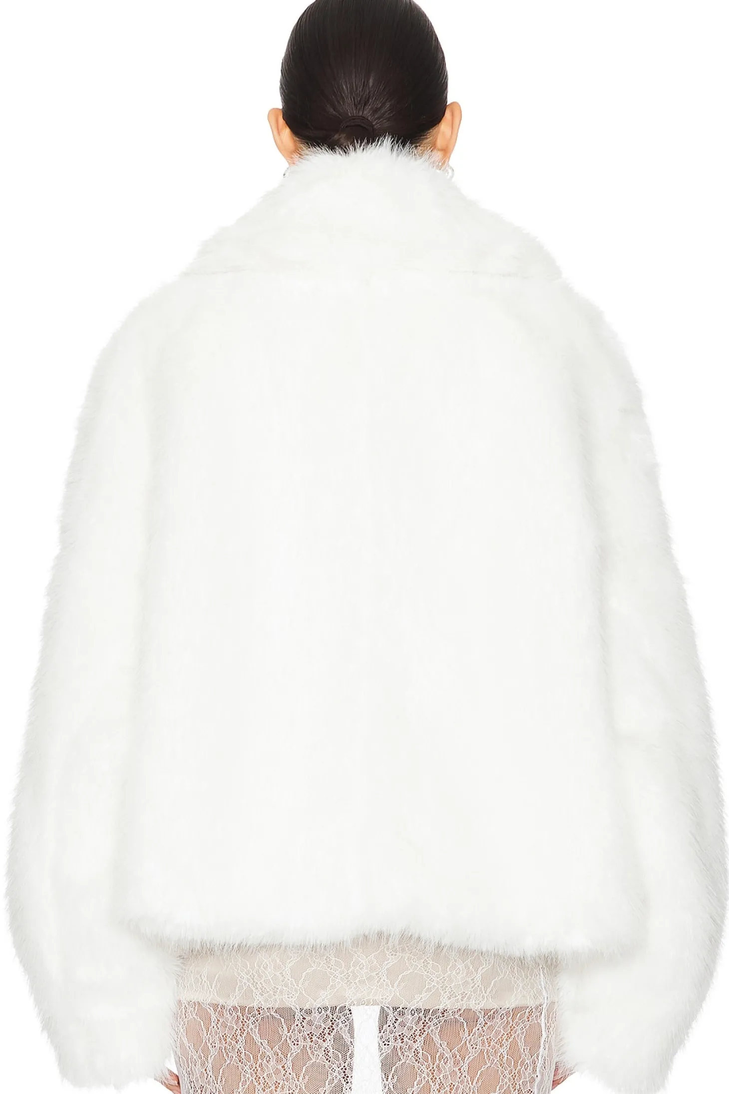 100% polyester.Made in Italy.Machine wash.Front hook and eye closure.Side seam pockets Notched lapel collar.Heavyweight faux fur fabric