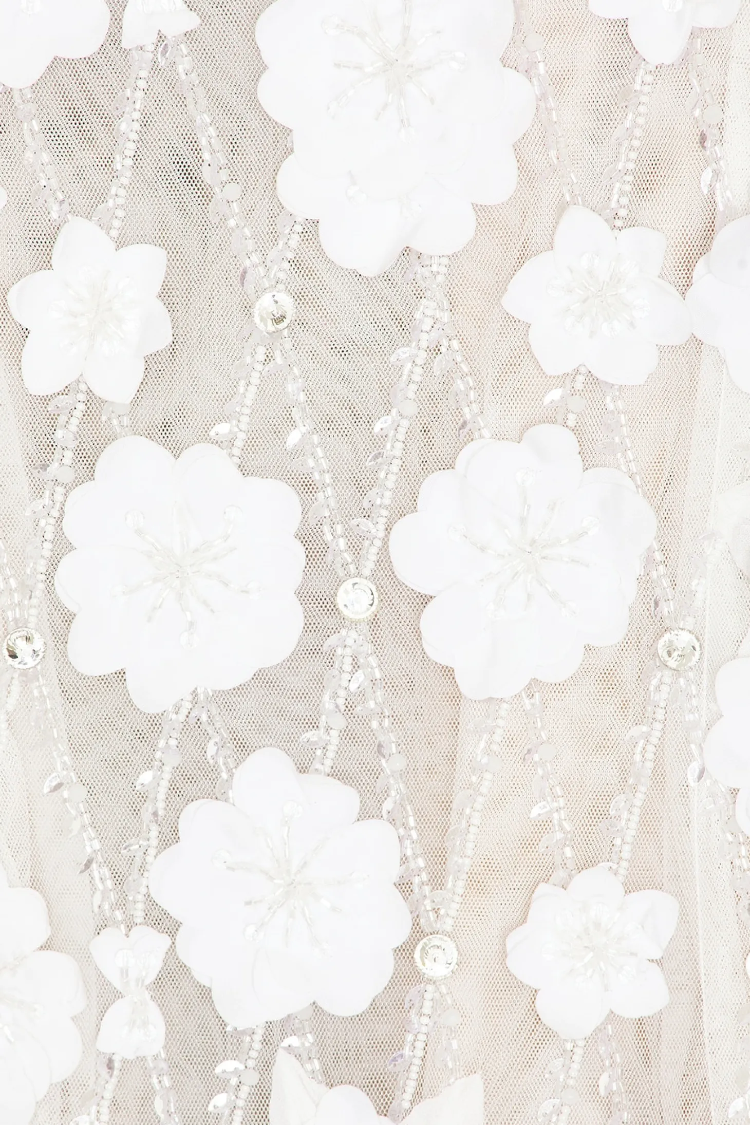 Self: 100% nylon Lining: 100% nylon Contrast: 50% polyester 45% nylon 5% elastane.Made in Inda.Dry clean only.Fully lined.Hidden back zipper closure
