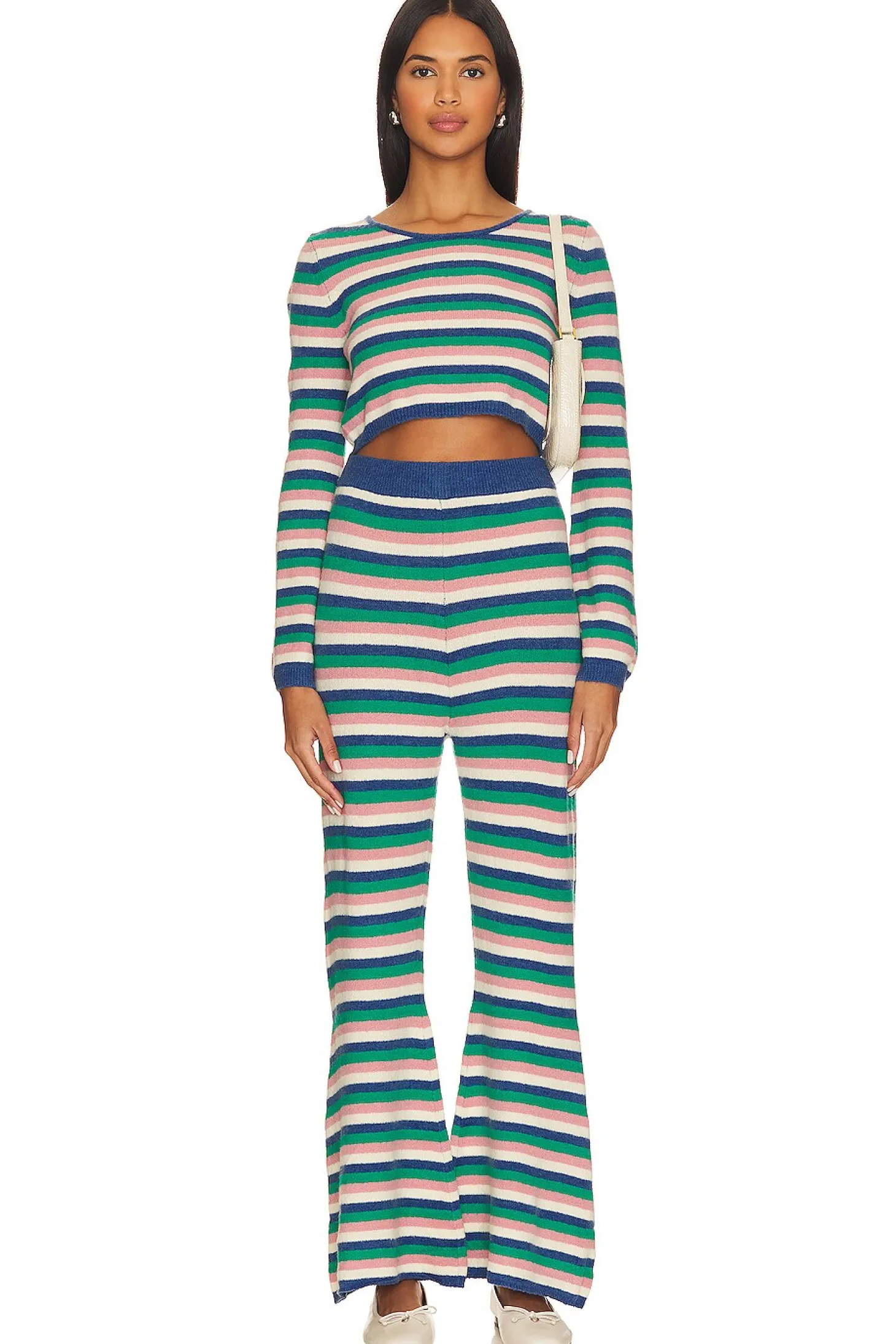 70% acrylic 27% nylon 3% elastane.Made in China.Machine wash.Soft knit fabric.Item not sold as a set