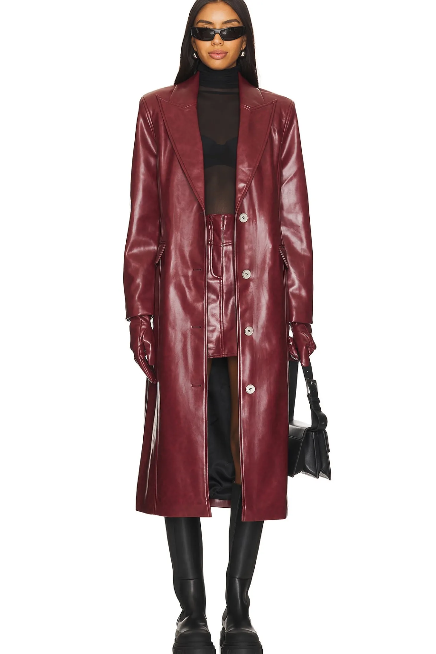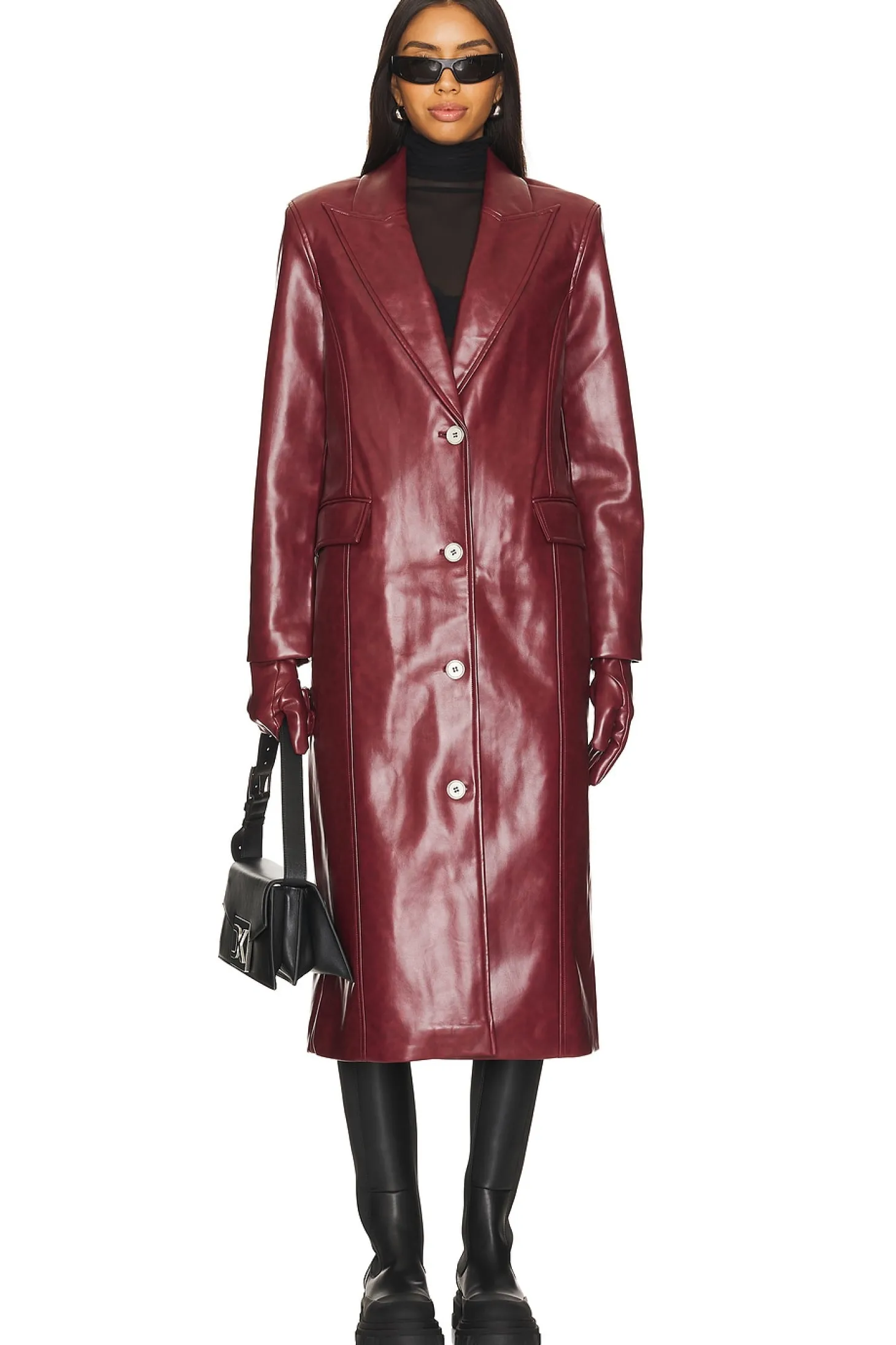 Self: 70% polyurethane 30% recycled polyester Lining: 100% recycled polyester.Made in China.Dry clean.Front button closures.Dual front pocket styling
