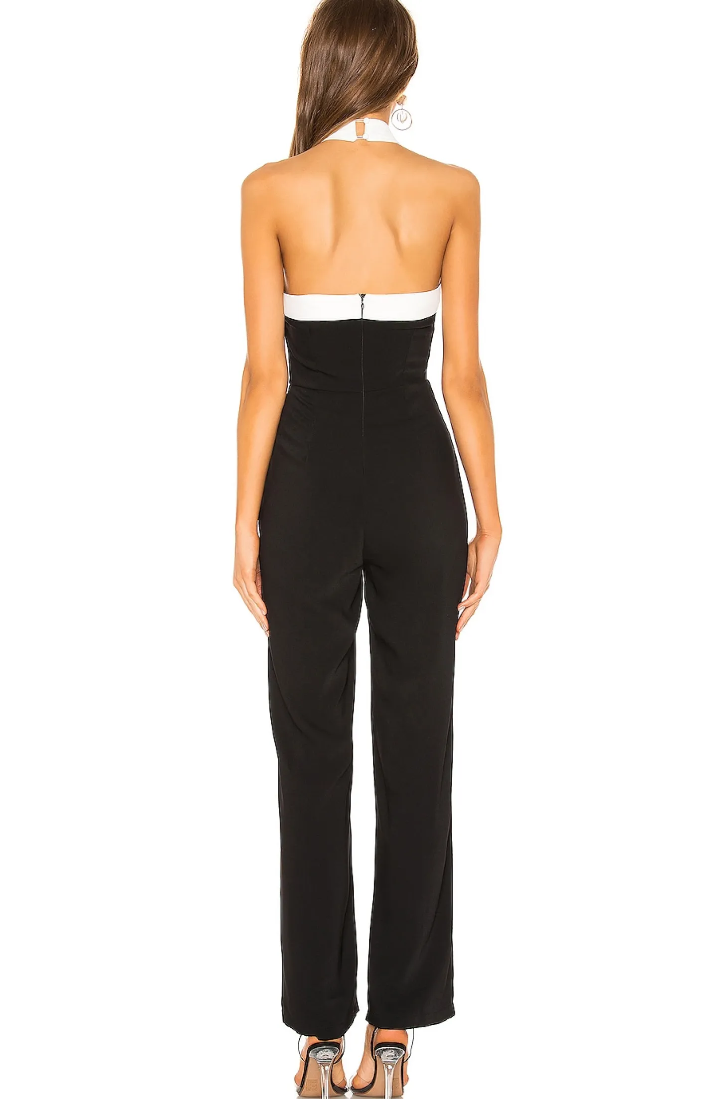 100% poly.Made in China.Hand wash cold.Loop button halter neck closure.Hidden back zipper closure.Crepe fabric.Body measures approx 29" in length 20" at the knee and 20" at the leg opening