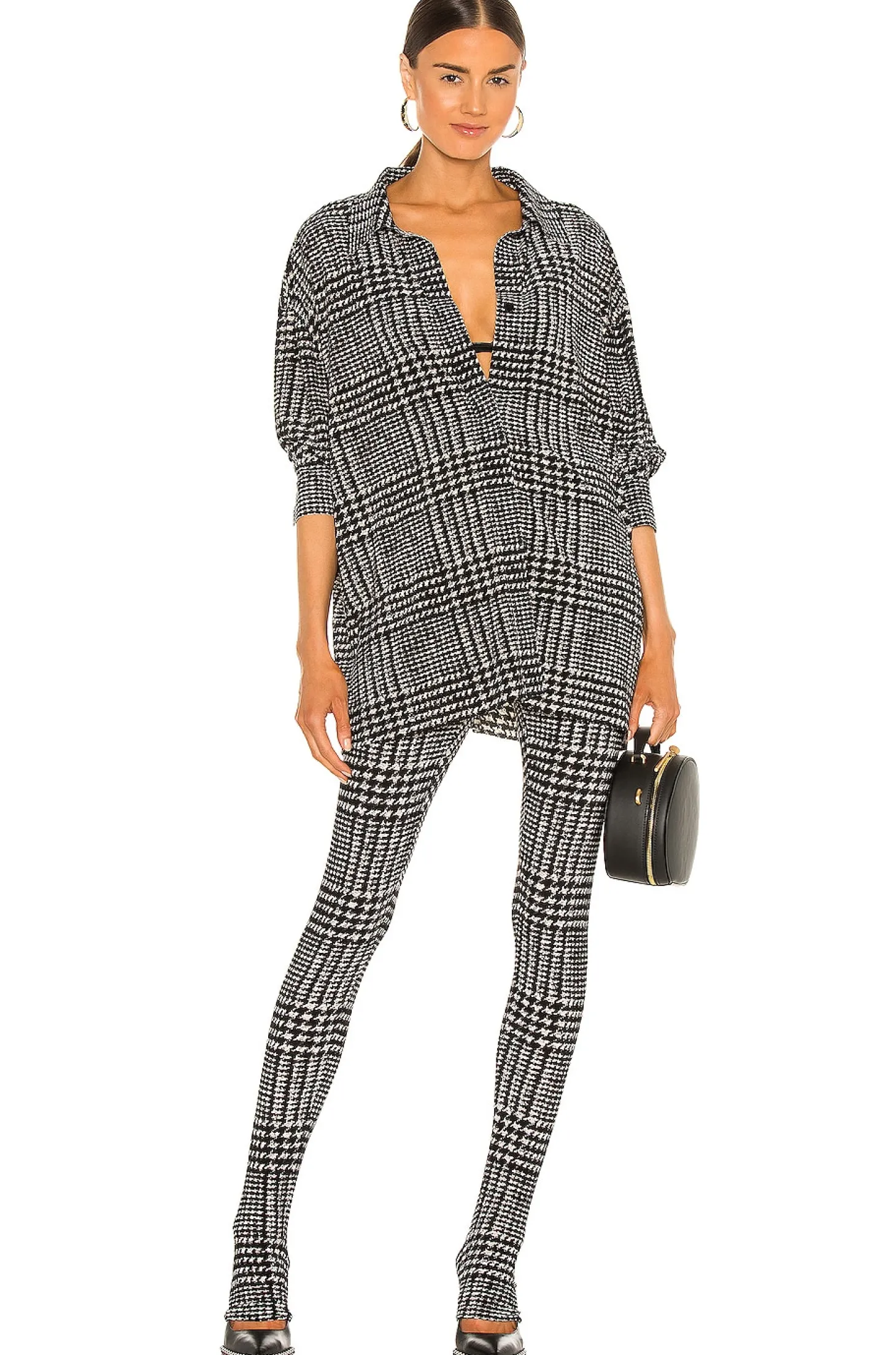 95% poly 5% spandex.Made in CHina.Hand wash cold.Stretch fit.Stirrup leg detail.Slinky fabric.Item not sold as a set.style runs large, size down