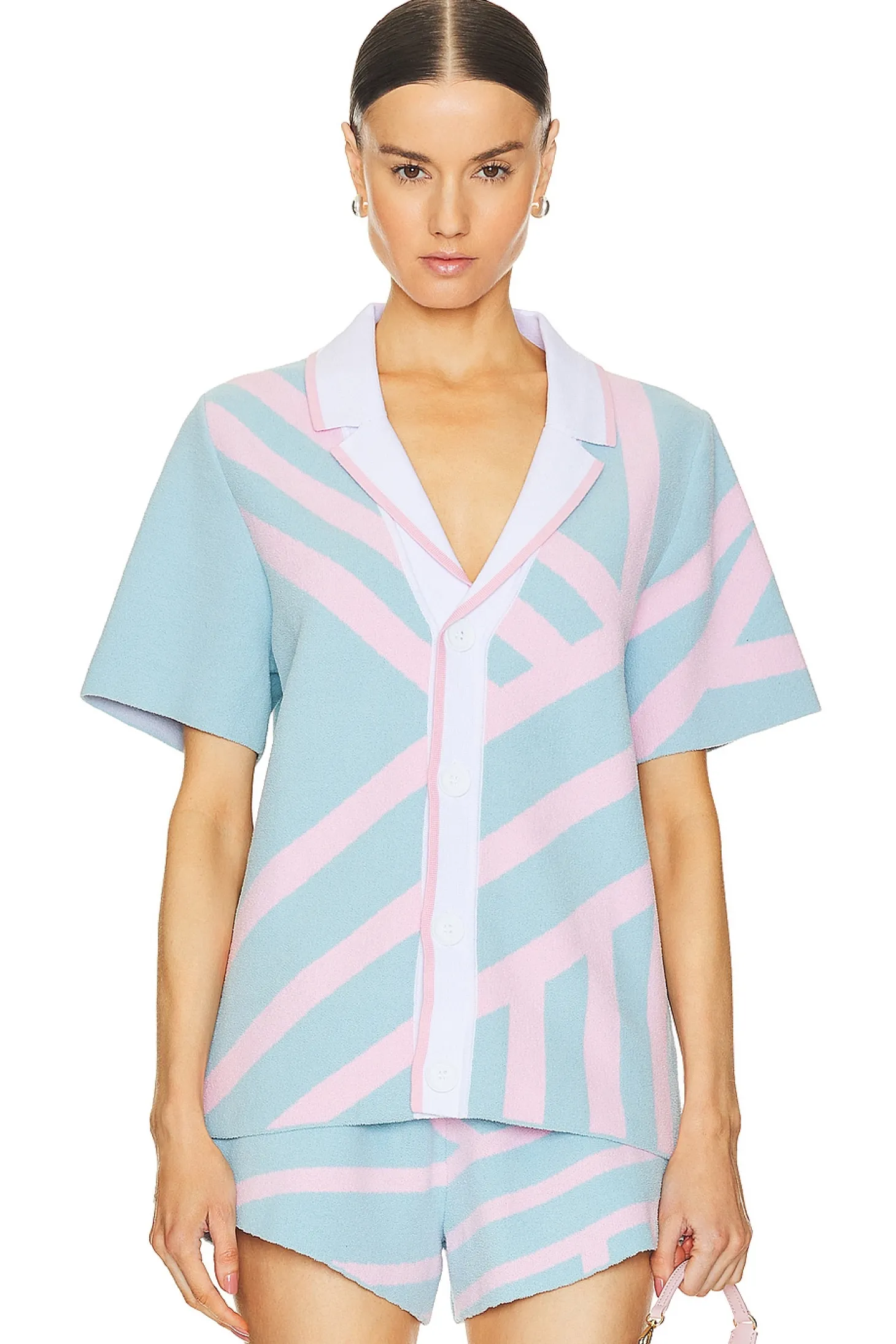 Self: 100% polyester Trim: 100% cotton.Made in China.Dry clean only.Front button closure.Midweight knit fabric.Item not sold as a set