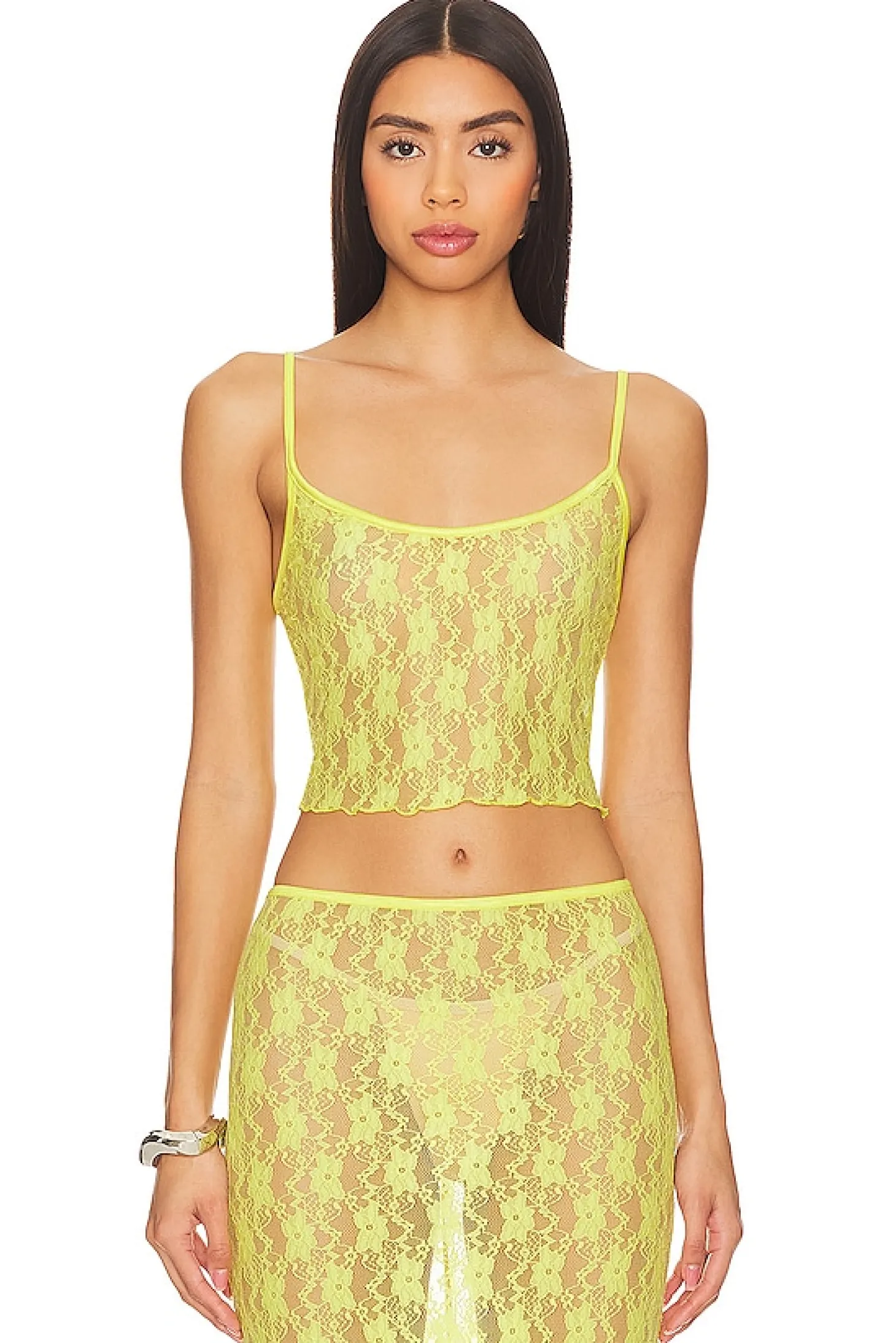 Turn heads and own your 'dressed up naked' look with the Lovers and Friends Lia Sheer Tank Top in Hot Pink. Crafted from delicate lace fabric, this tank is the epitome of sexy meets girly. Unleash your confidence and make a statement like never before!.Self: 92% nylon 8% elastane Contrast Fabric: 95% rayon 5% elastane.Made in China.Hand wash.Lace fabric with adjustable shoulder straps.Garment is intentionally sheer, undergarments will show through..Please note undergarment not included.Item not sold as set