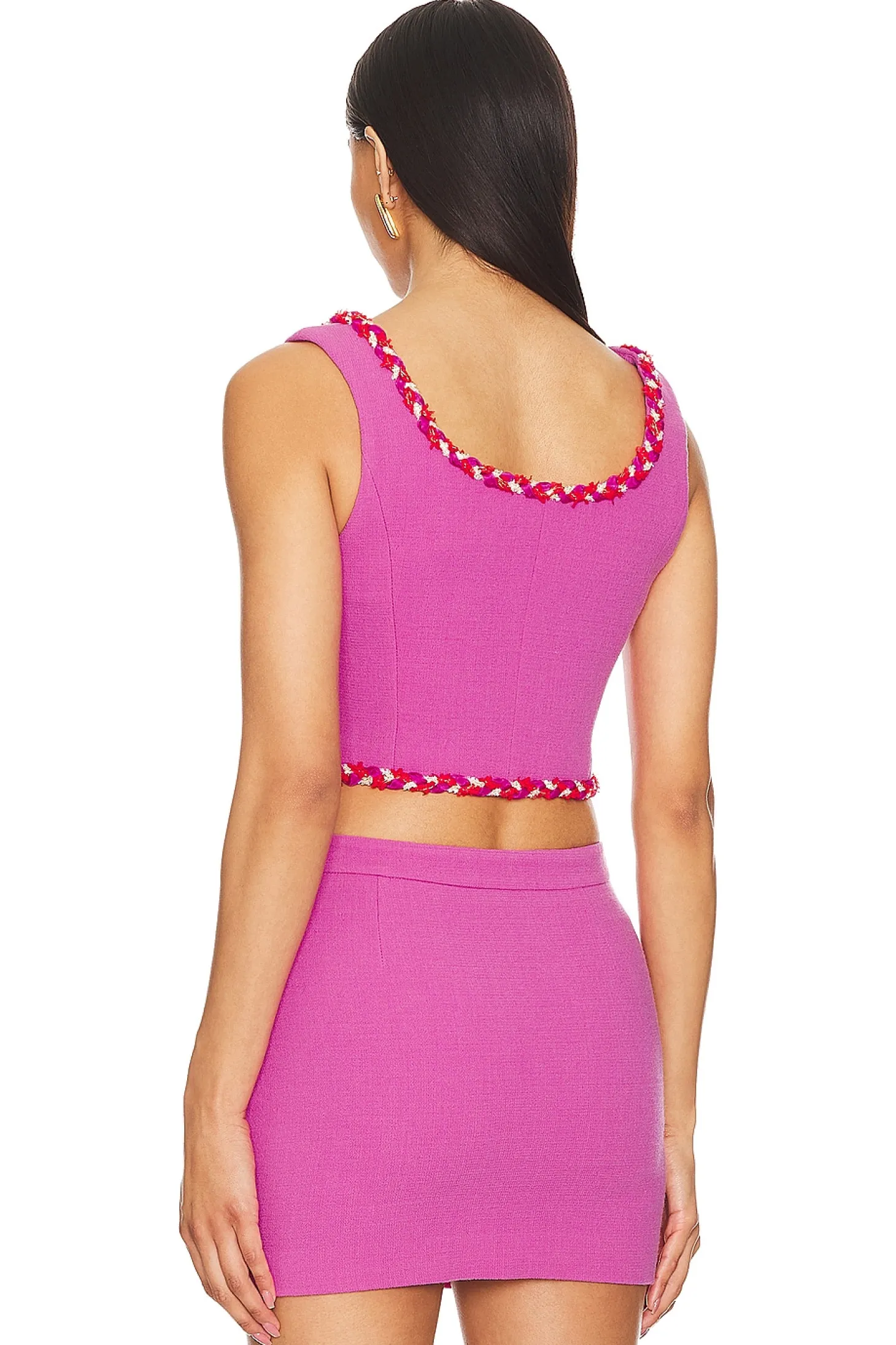 Crepe blend.Imported.Dry clean recommended.Front button closure.Tweed trim.Lightweight crepe fabric.Item not sold as a set