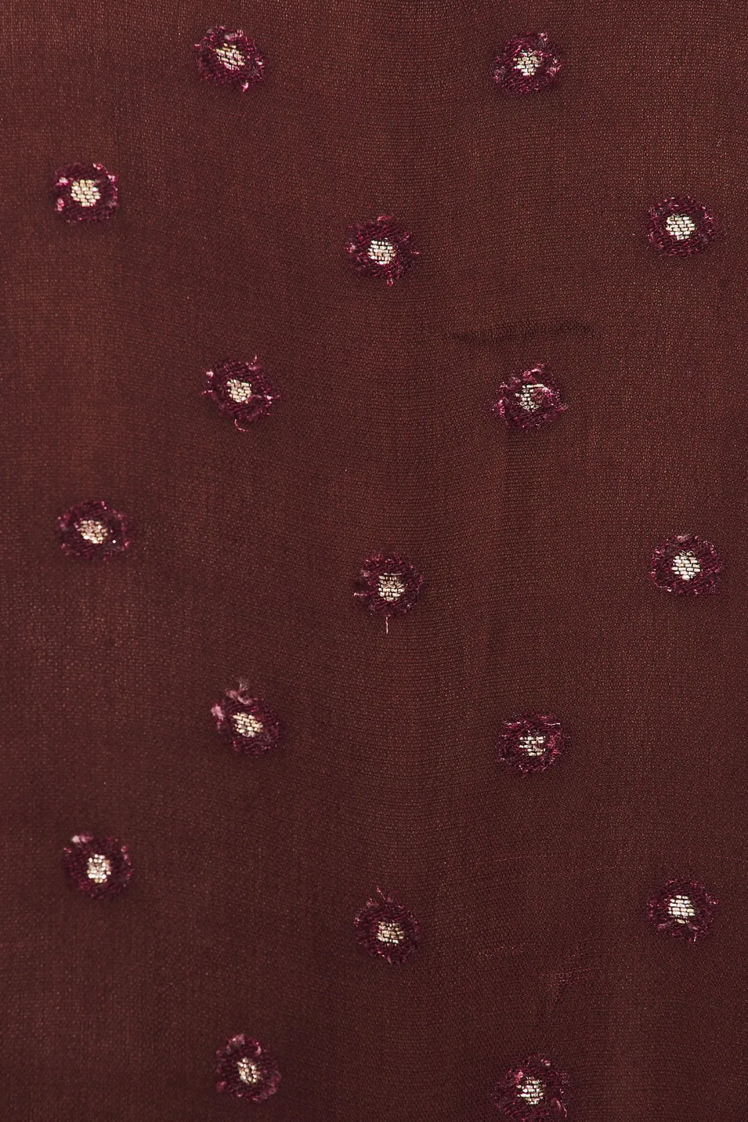 Self: 95% viscose 5% metallic Lining: 100% polyester.Made in India.Dry clean only.Optional slip lining with adjustable straps.Exposed front button closure.Tiered ruffle skirt with floral print throughout.Button cuffs and tie belt