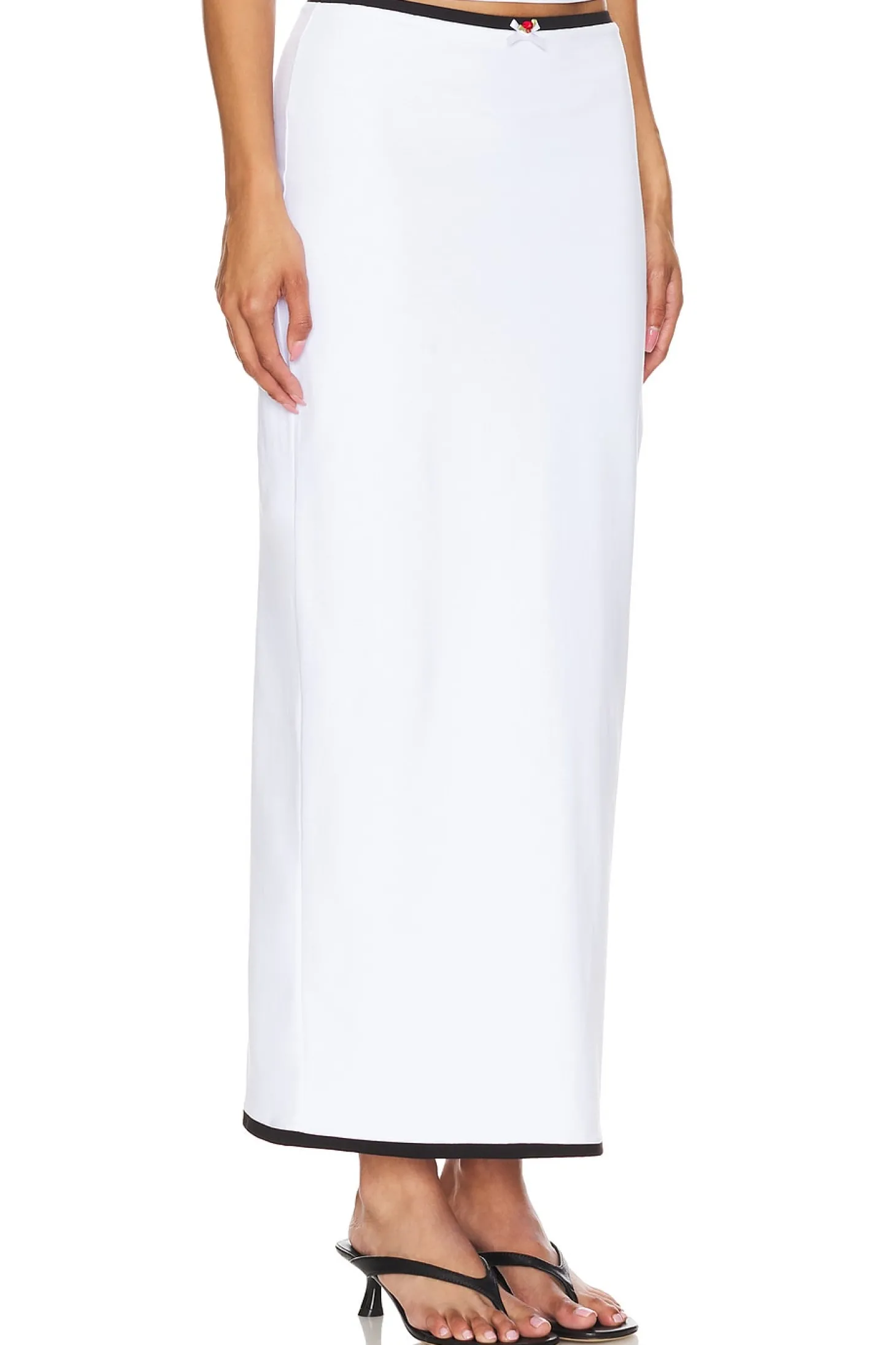 94% cotton 6% elastane.Made in Italy.Machine wash.Unlined.Pull-on styling with elastic waistband.Front small rosette detail.Thick jersey fabric with back vent Item not sold as a set.Skirt measures approx 37.5" in length