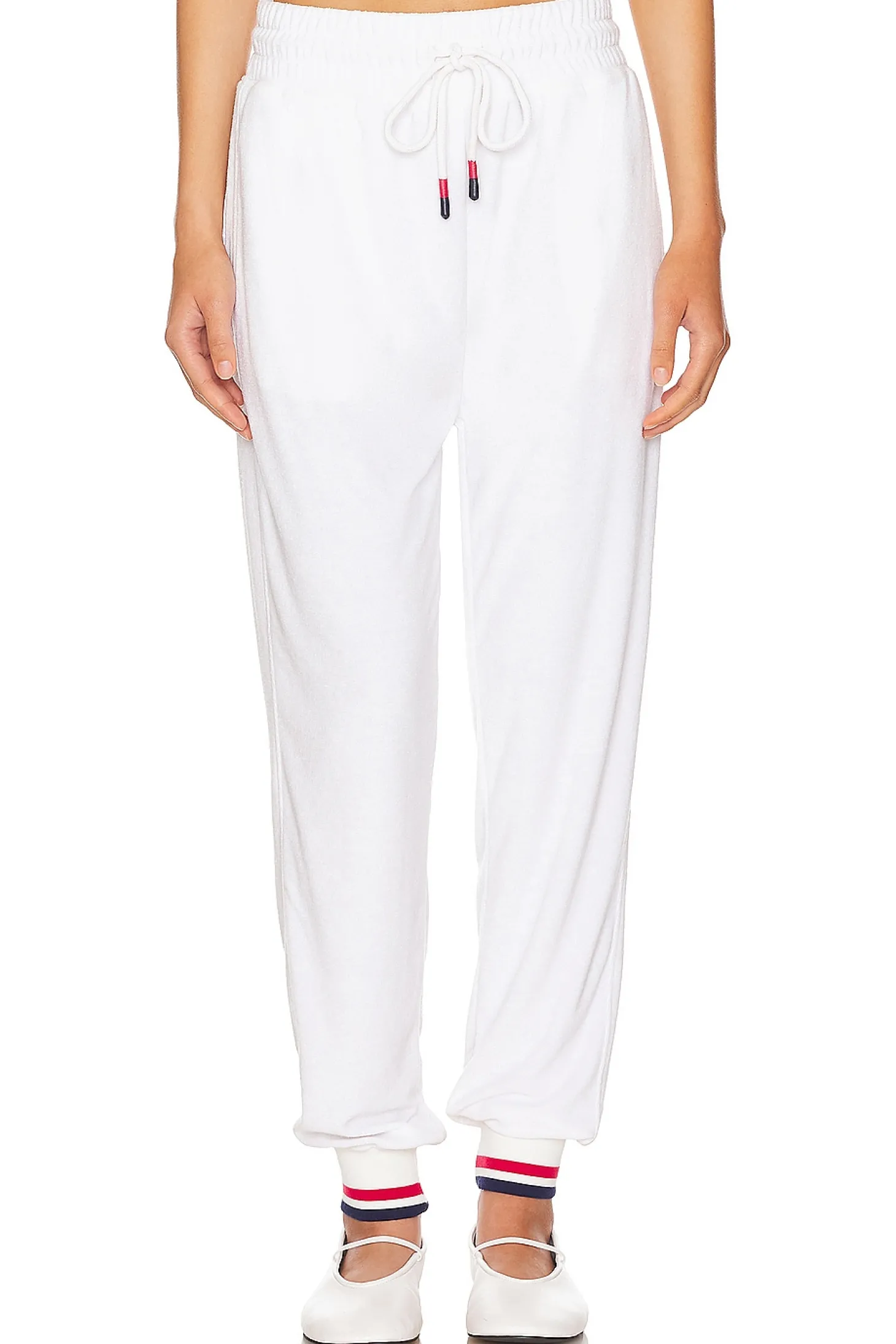 69% polyester 31% rayon.Made in China.Machine wash recommended.Fully lined.Elastic waistband drawstring.18" at the knee narrows to 8" at the leg opening