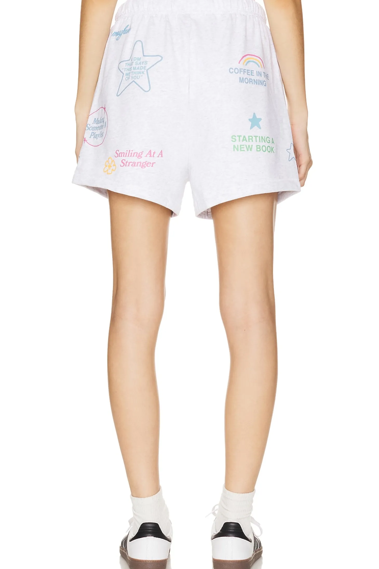 84.3% cotton 15.7 polyester.Made in China.Machine wash.Pull-on styling with elastic waistband and drawstring.Side slit pockets.Graphic detail on front and back.Item not sold as a set.Shorts measure approx 14.5" in length