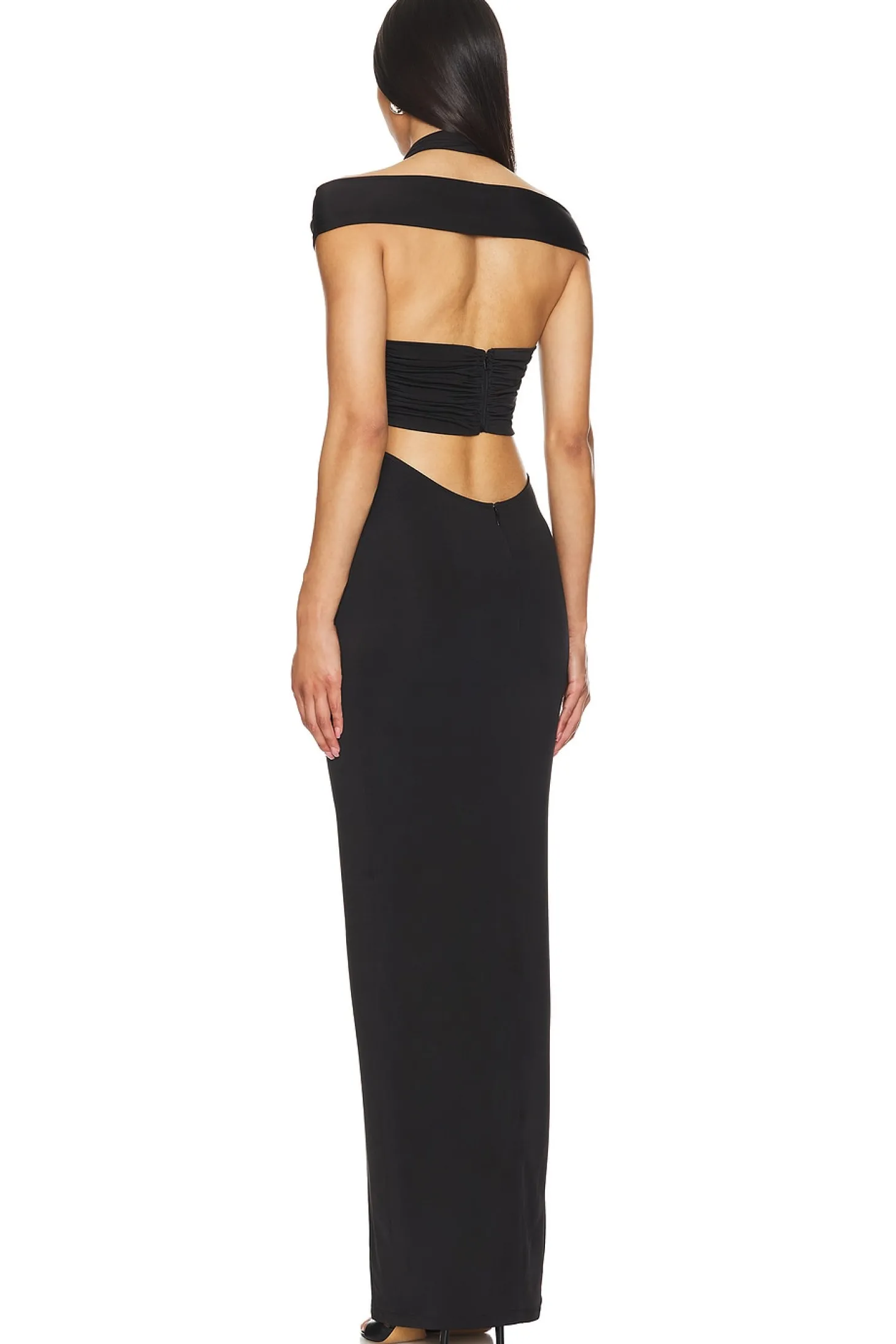 93% polyester 7% elastane.Made in Turkey.Dry clean.Fully lined.Hidden back zipper closure with halterneck detail