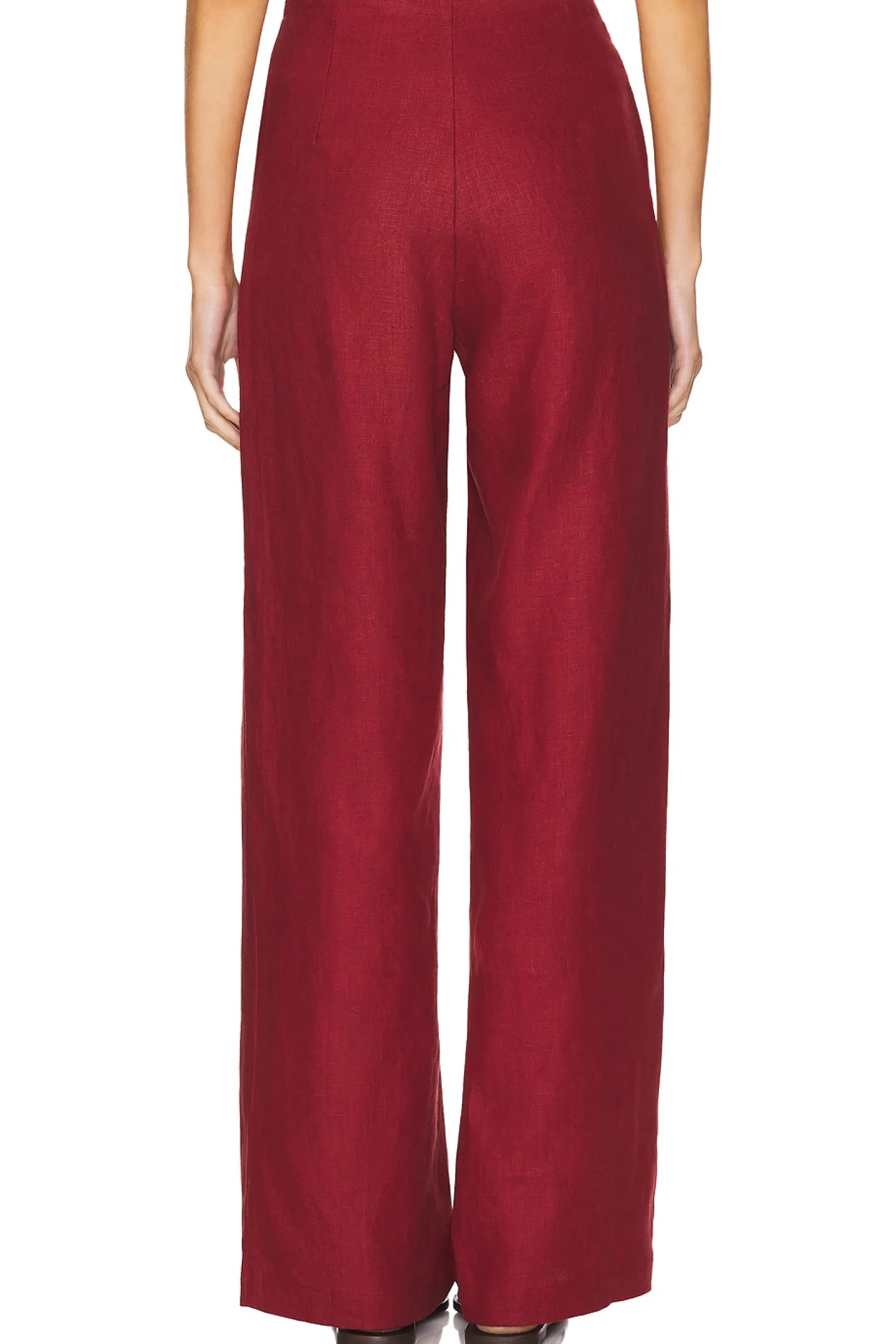 100% linen.Made in Indonesia.Hand wash.Zip fly with hook and bar closure.Slant side pockets.Linen fabric.Item not sold as set.21" at the knee and 21" at the leg opening