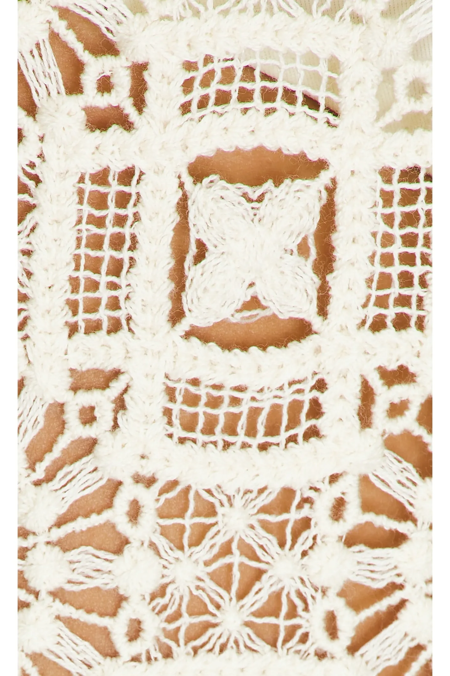 Self: 95% cotton 5% polyester Self 2: 84% polyamide 16% elastane.Made in Colombia.Hand wash.Pull-on styling with elastic waistband.Open crochet knit fabric with cargo and back pockets.Brief bottoms included.24" at the knee and 25" at the leg opening