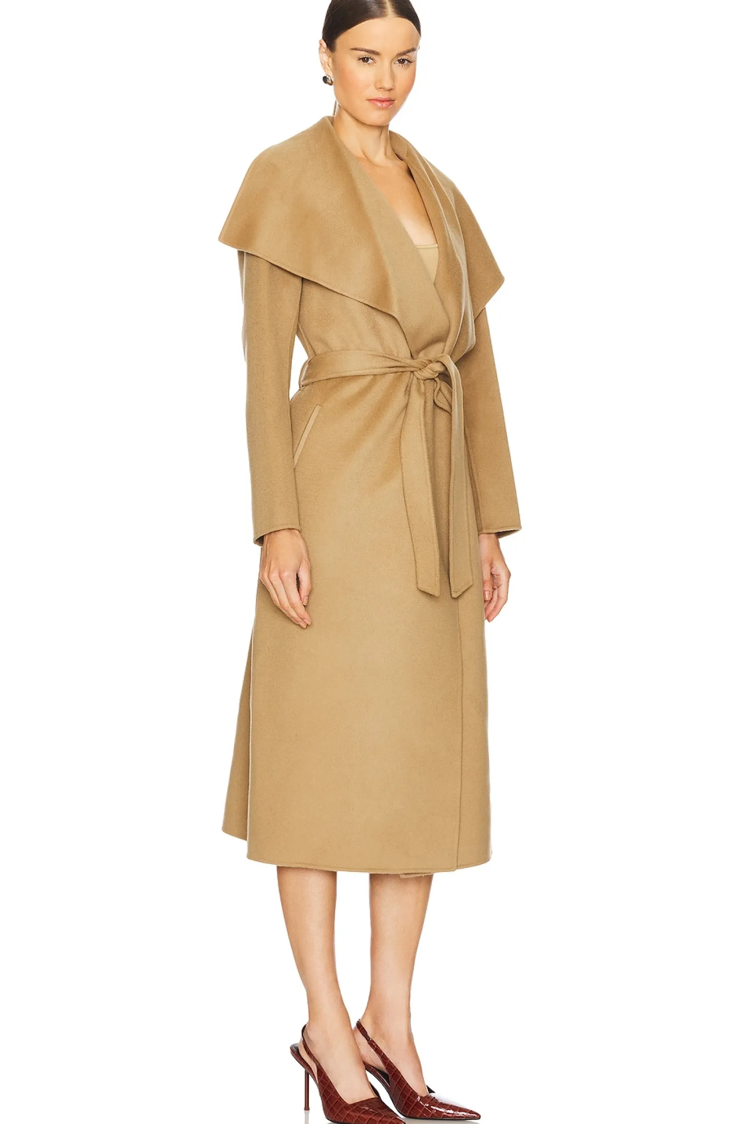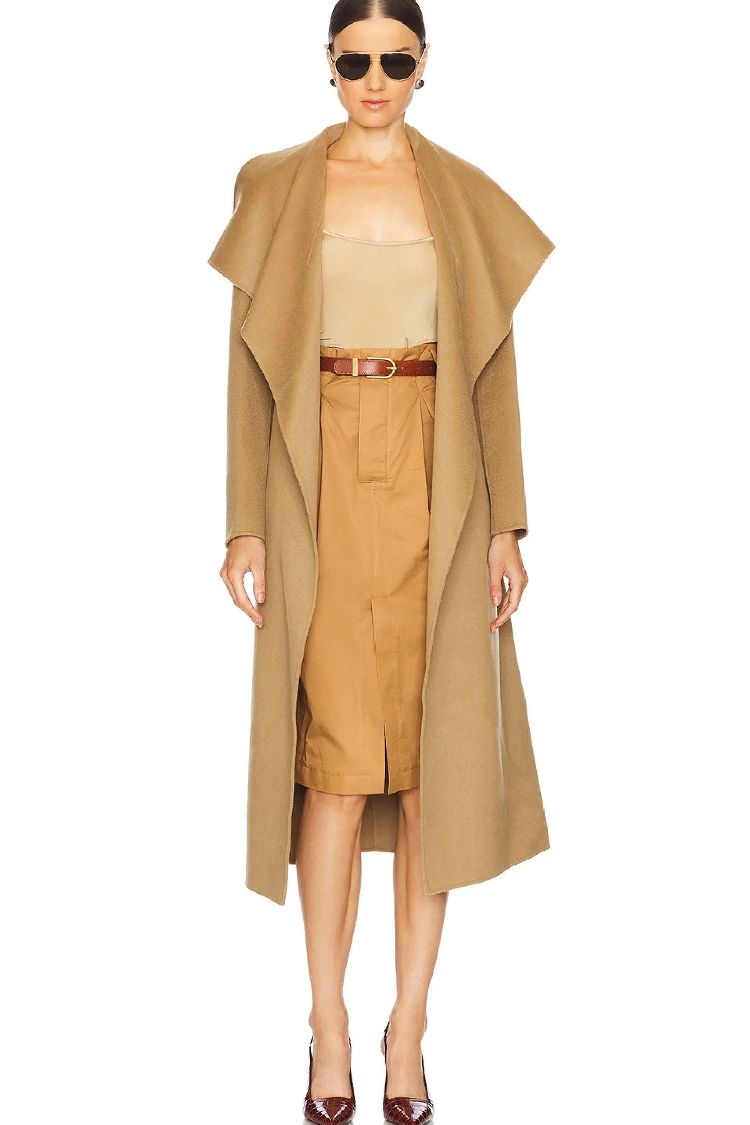 100% wool.Made in China.Professional leather clean only.Open style with optional waist belt.Side pockets.Melton fabric