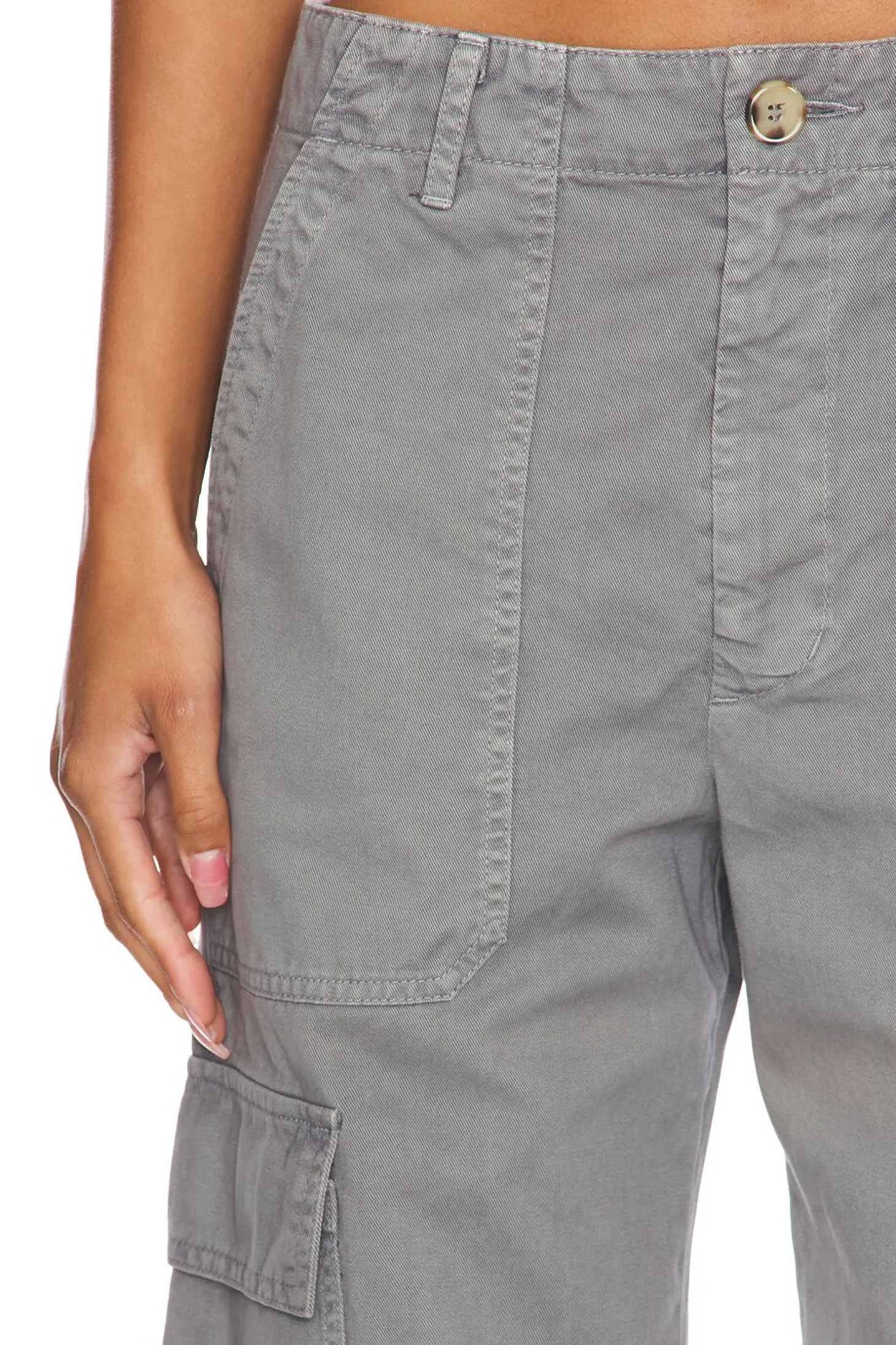 100% cotton.Made in USA.Machine wash.Zip fly and button closure.4-pocket design and cargo pockets.Twill fabric.22" at the knee narrows to 20" at the leg opening