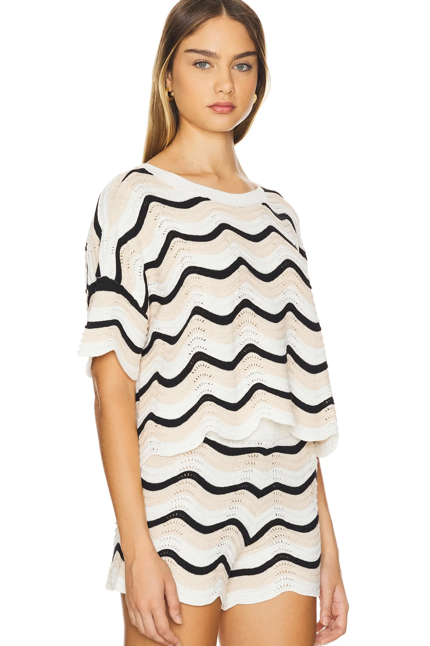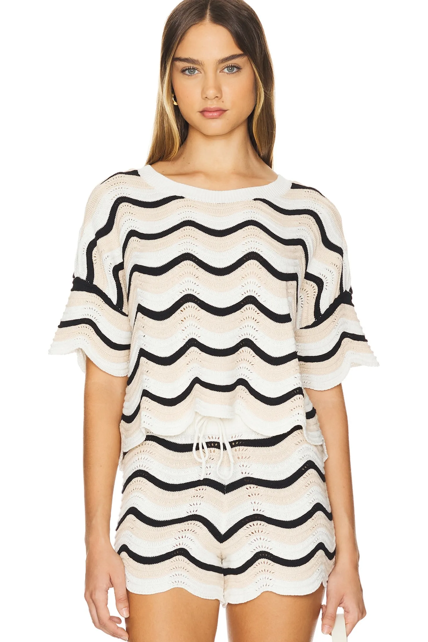 Knit textile.Imported.Hand wash recommended.Lightweight knit fabric with scalloped trim.Item not sold as a set