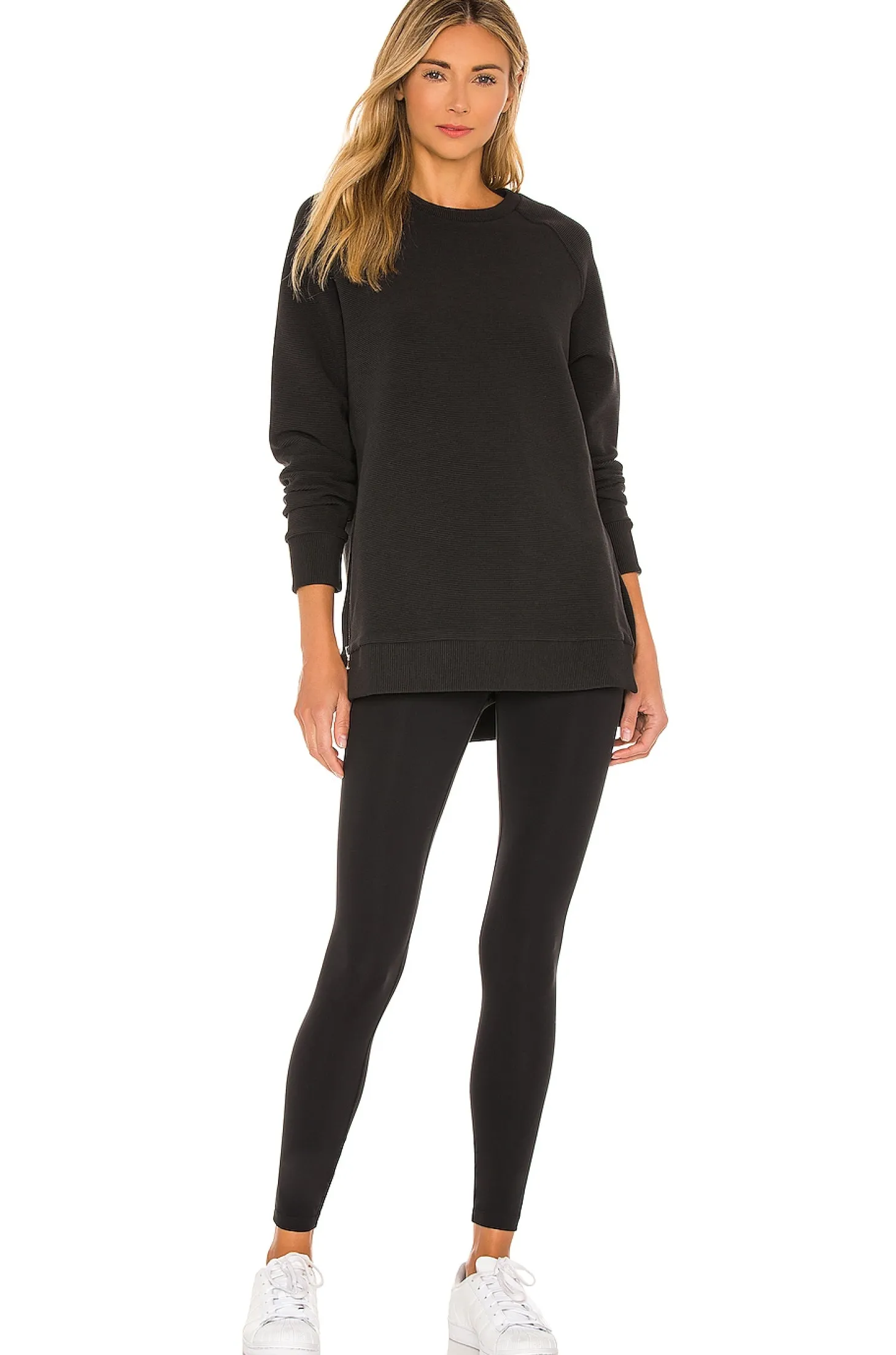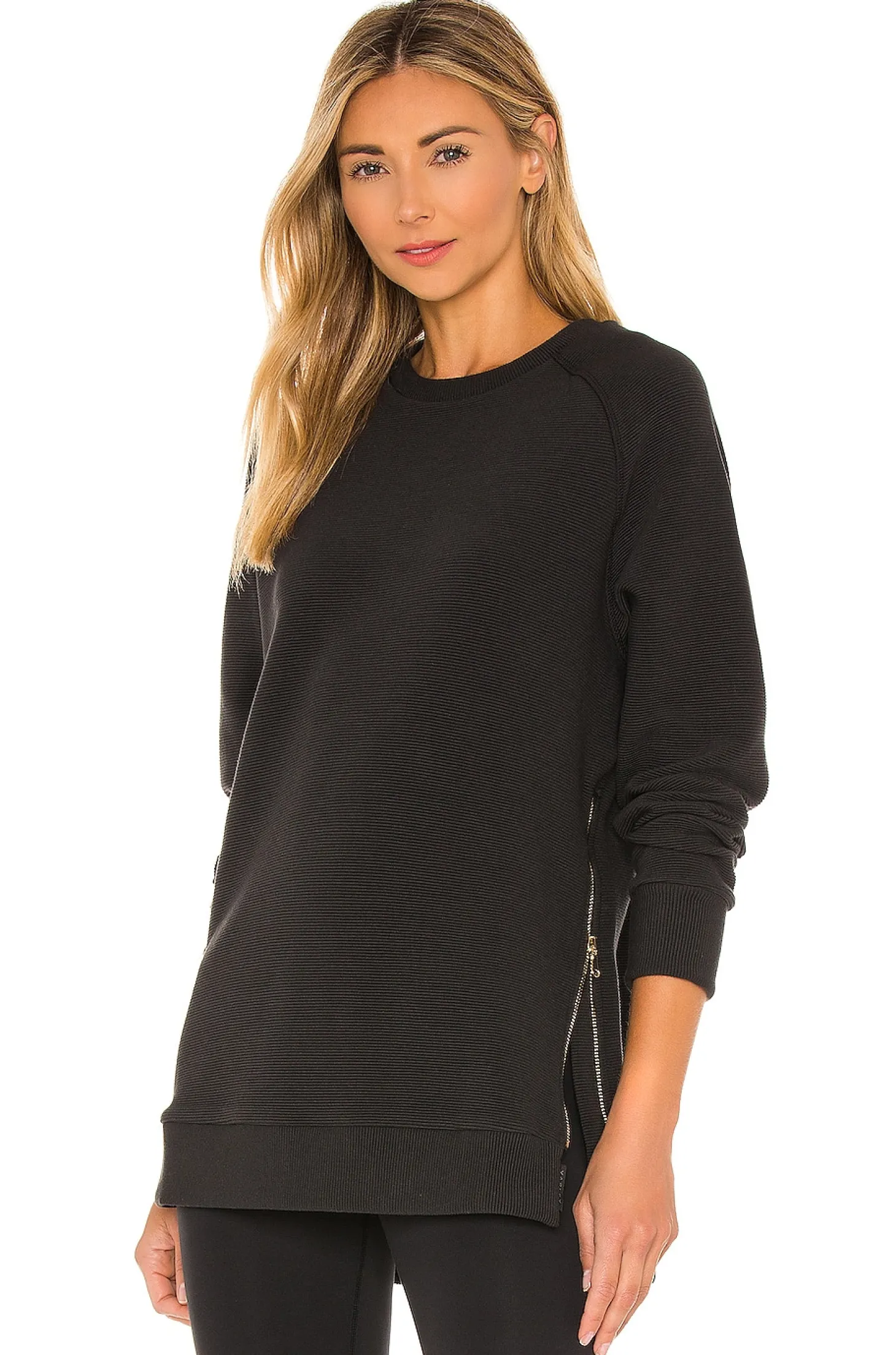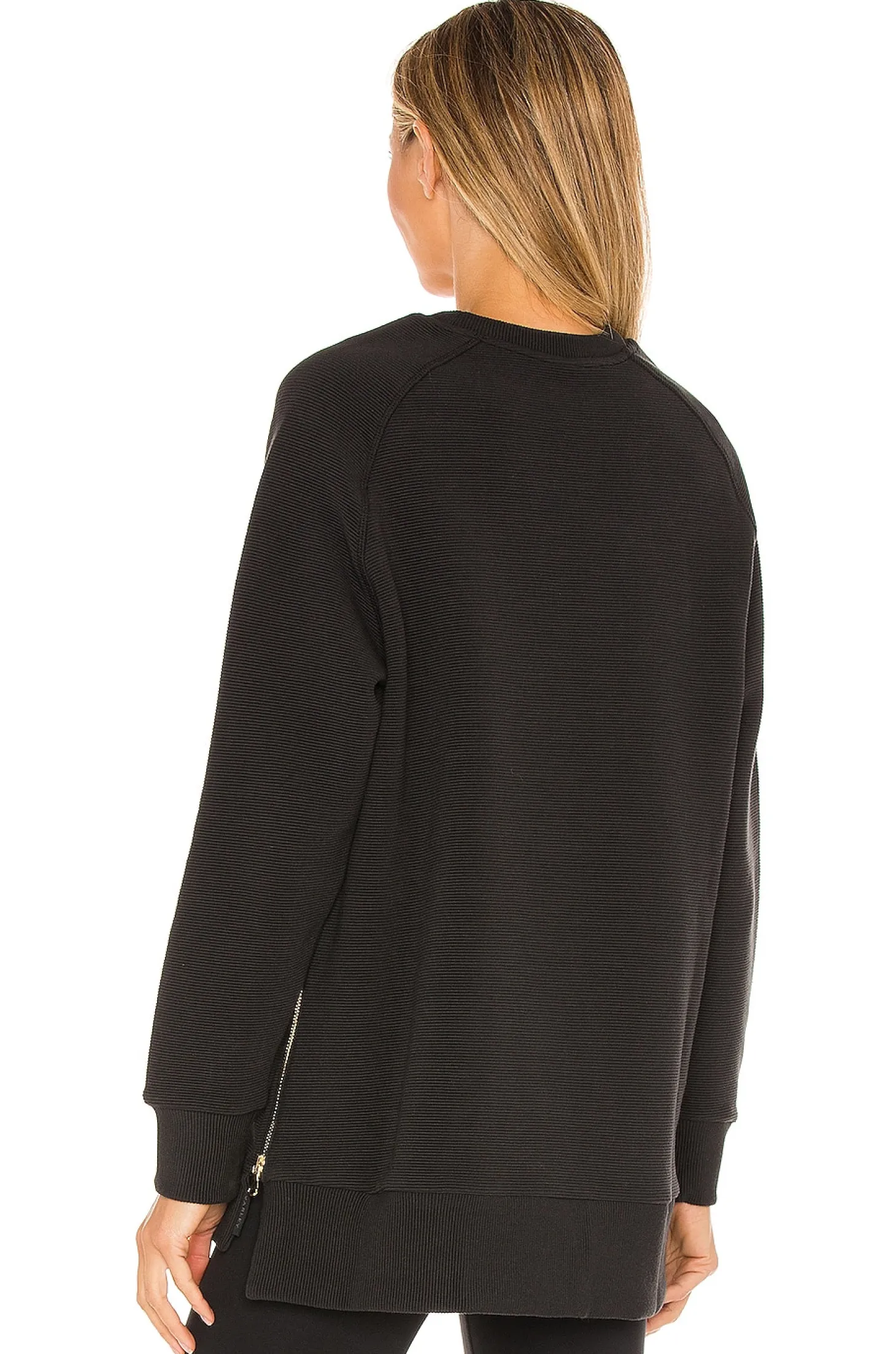 53% cotton 46% poly 1% elastane.Mid-weight ribbed fabric.Raglan sleeves.Zipper details at hem.Imported