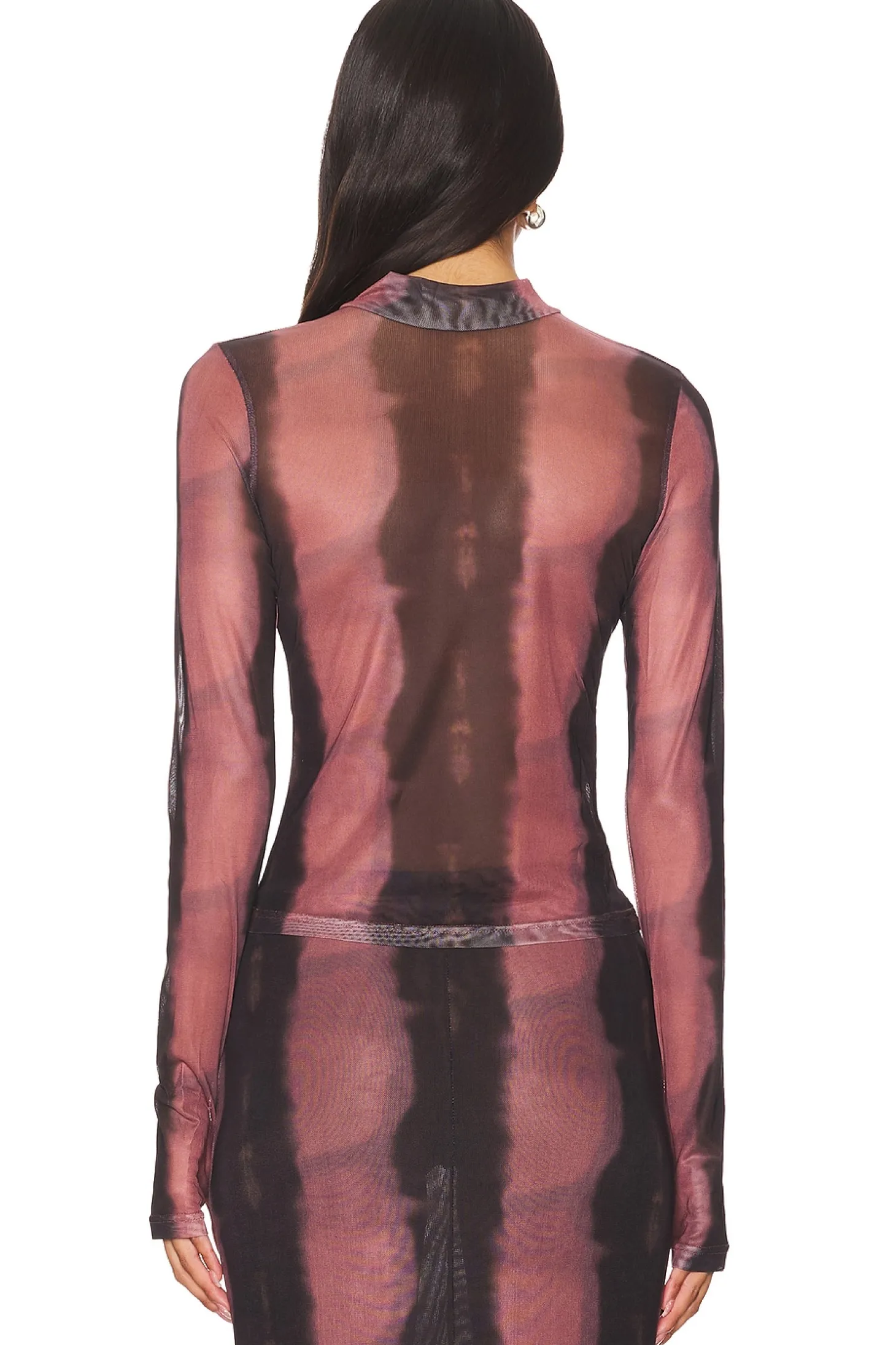95% polyester 5% elastane.Made in China.Machine wash.Pull-on styling.Mesh fabric.Item not sold as set.Garment is intentionally sheer, undergarments will show through. Please note undergarment not included