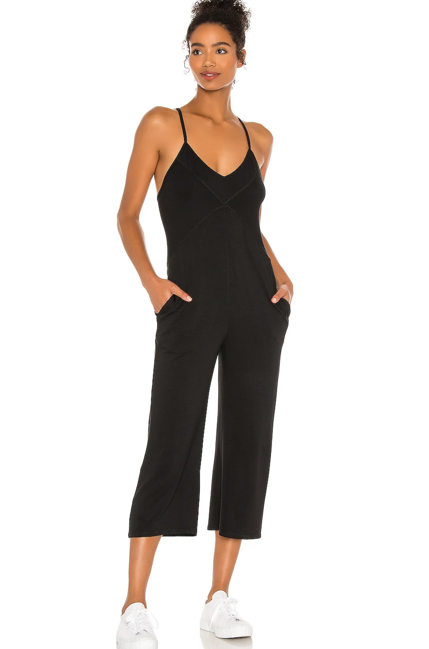 95% rayon 5% spandex.Hand wash cold.Side slant pockets.Ribbed panels.Made in USA