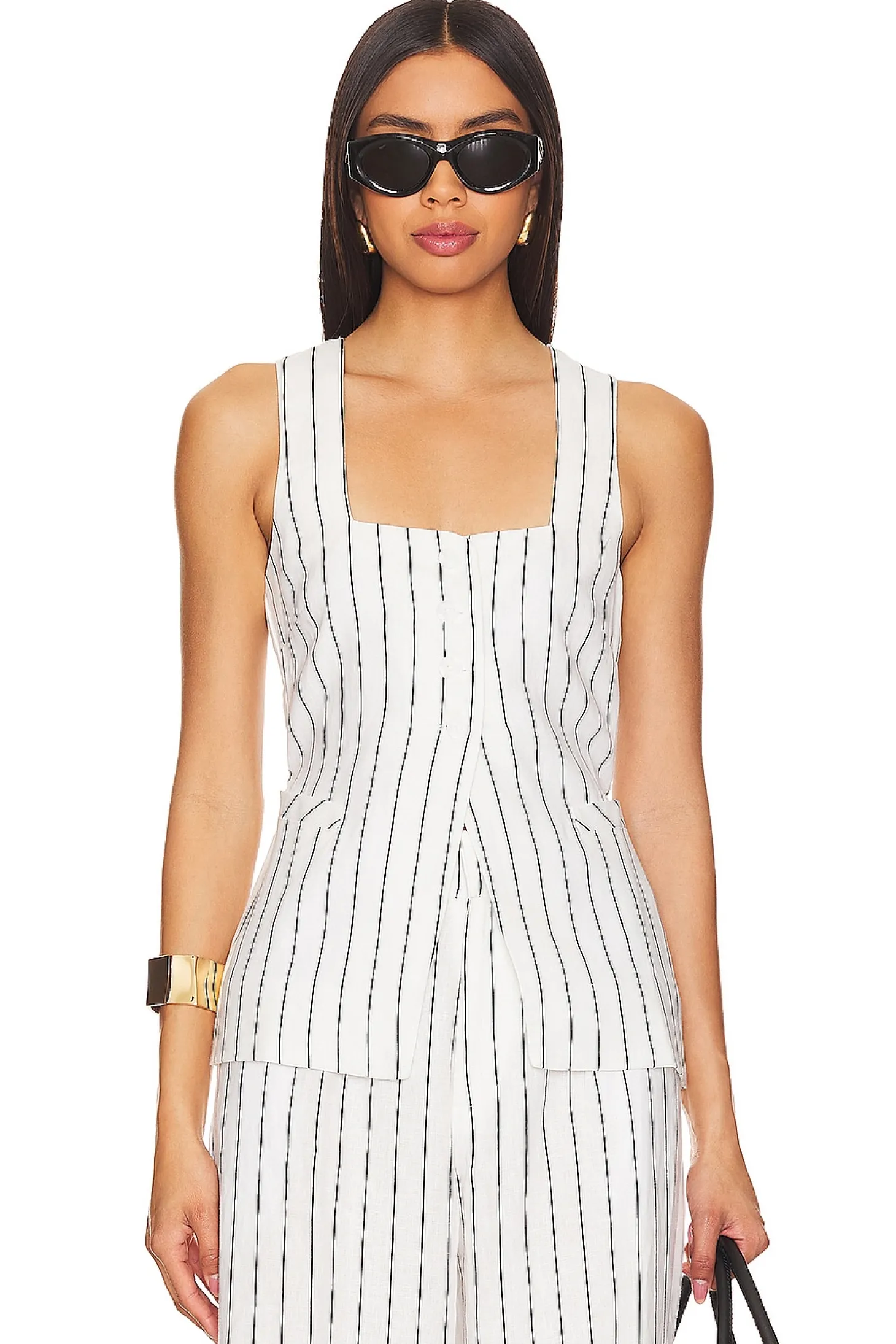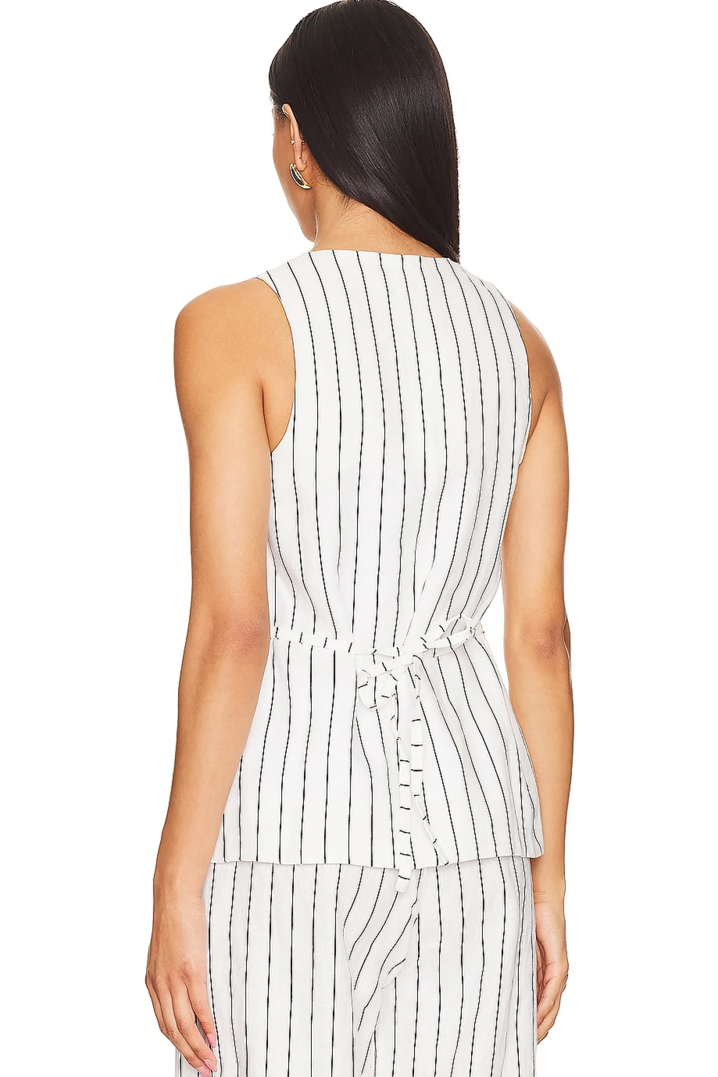 Self: 100% linen Lining: 100% rayon.Made in Indonesia.Hand wash.Front button closure.Faux welt pockets.Attached waist tie.Midweight linen fabric.Item not sold as a set