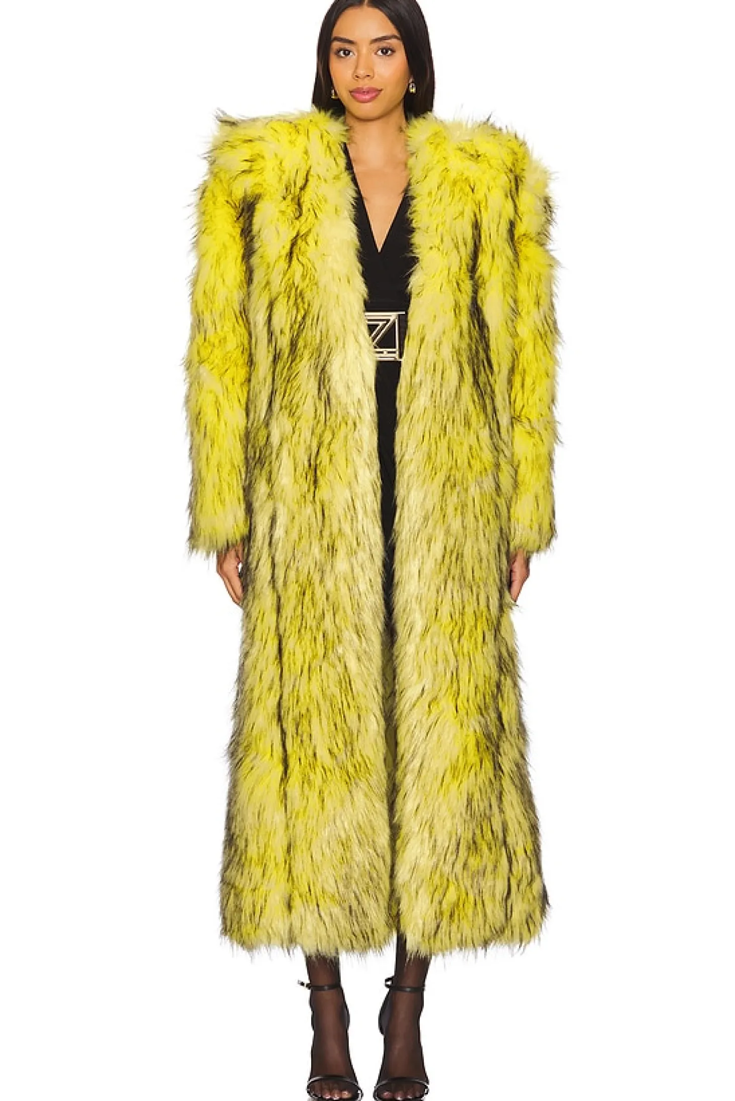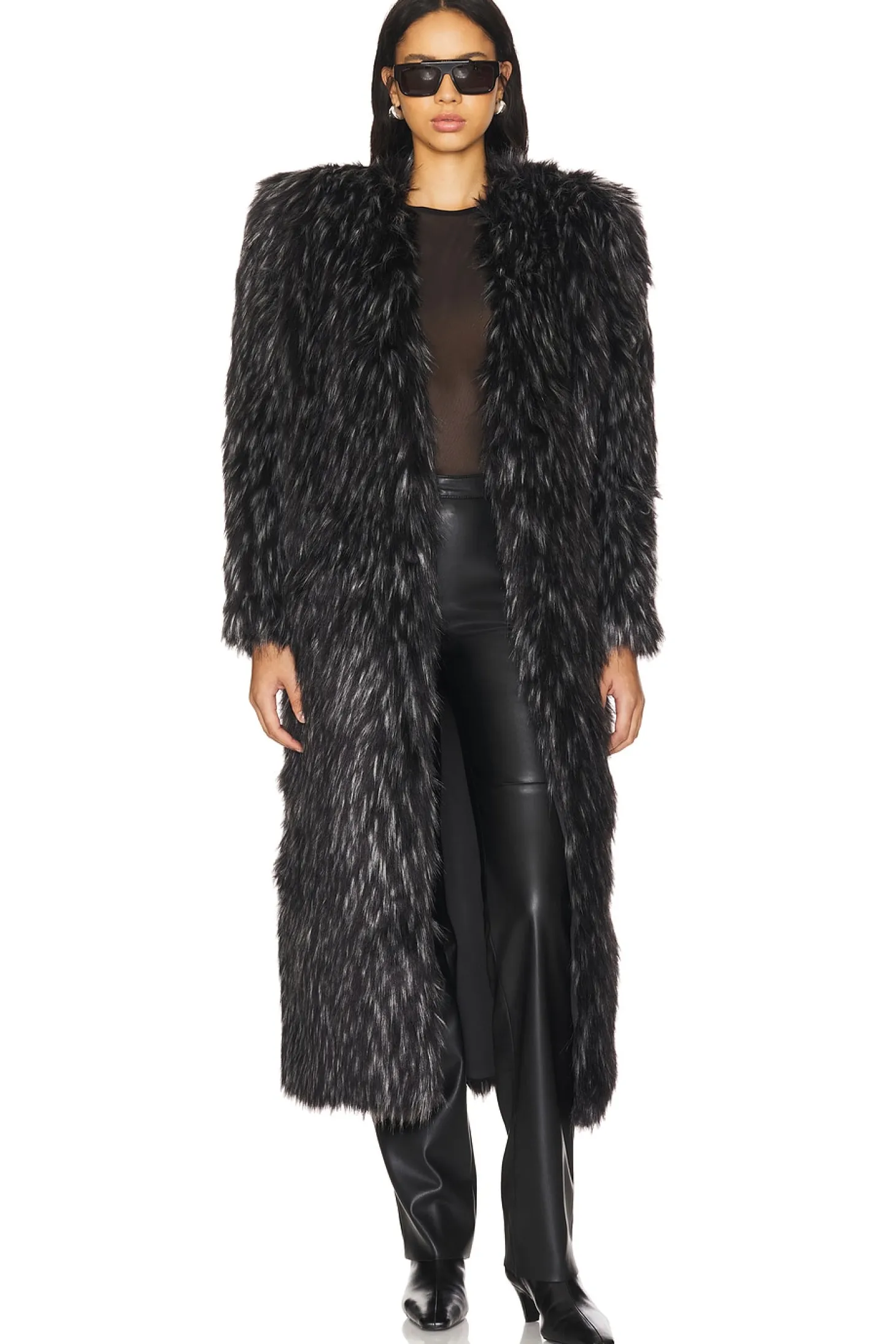 Self: 100% polyester Lining & Contrast Fabric: 95% polyester 5% elastane.Made in China.Hand wash.Pull-on styling.Structured padding at shoulders.Faux fur fabric