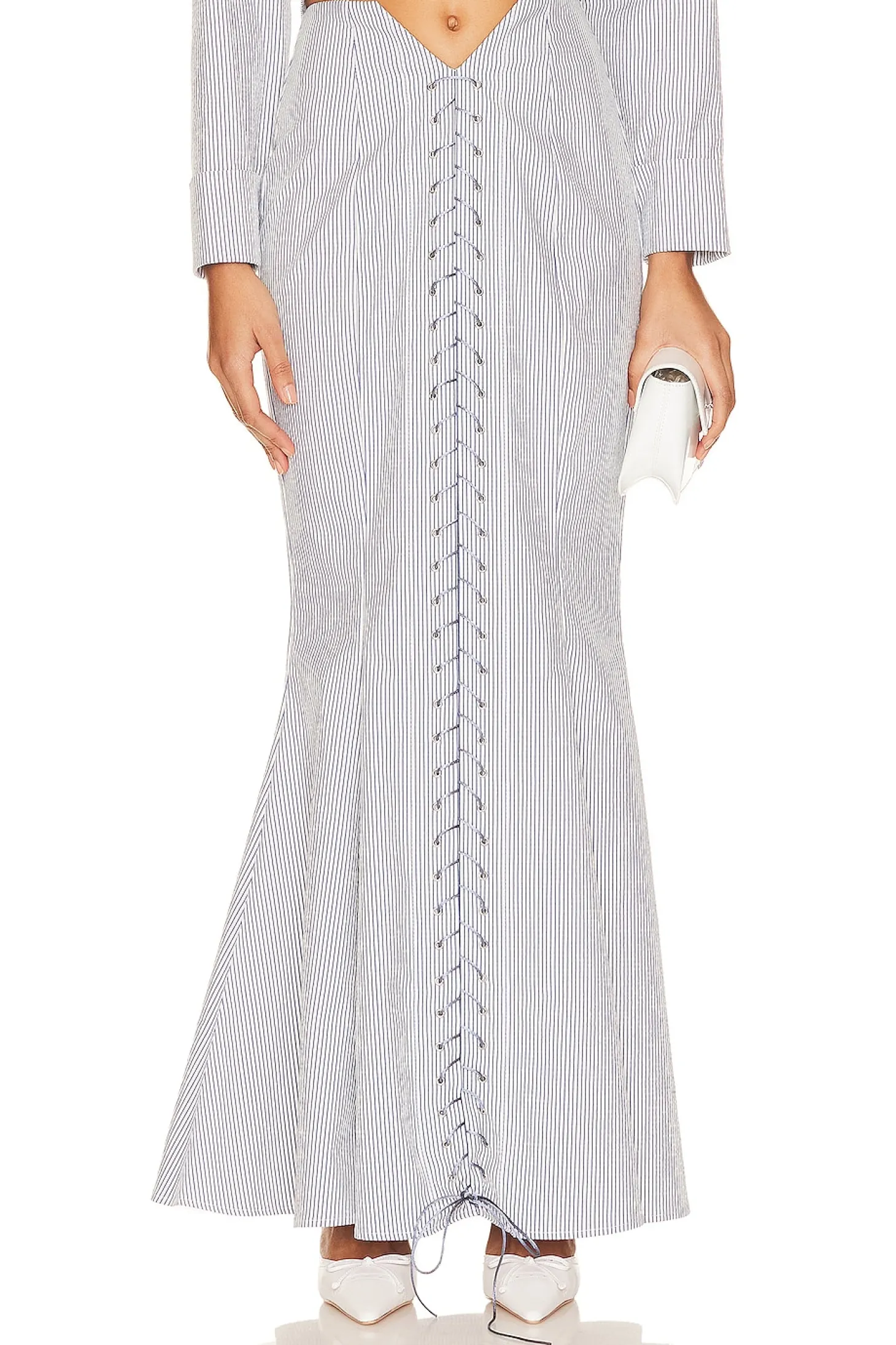 Cotton blend.Imported.Dry clean recommended.Unlined.Hidden back zipper closure.Waist V-detail.Front lace-up detail Item not sold as a set.Skirt measures approx 44.5" in length