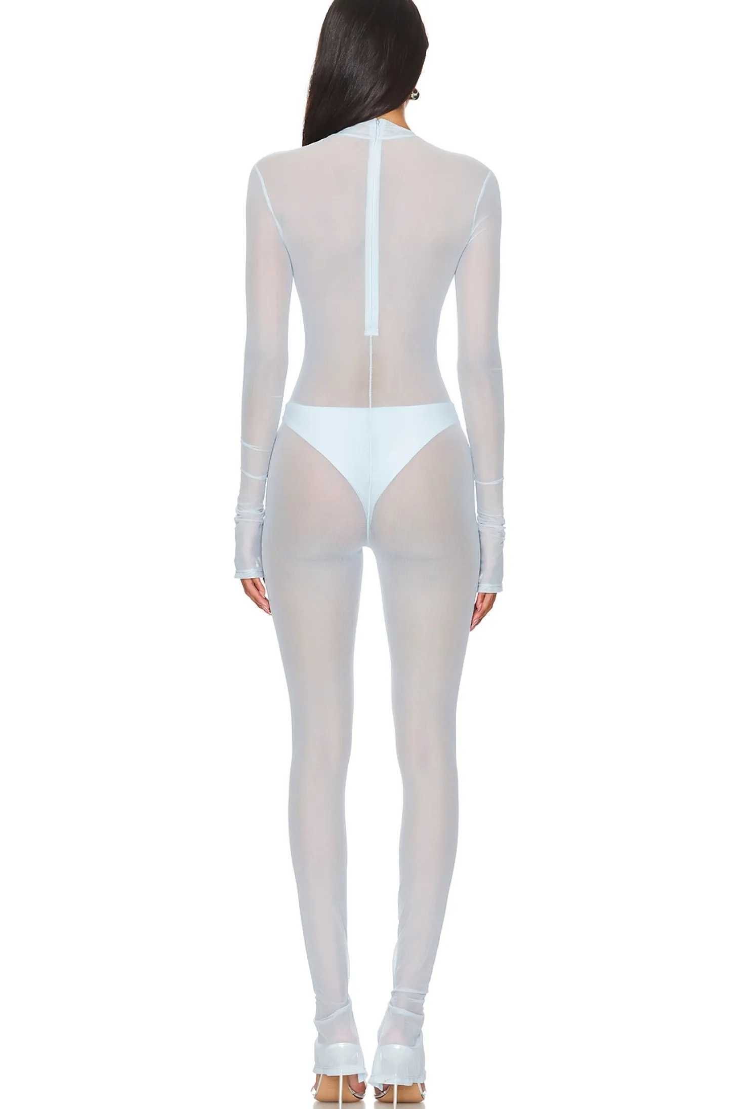 Self: 94% polyester 6%elastane.Made in U.S.A.Machine wash cold.Hidden back zipper closure.Mesh fabric.Garment is intentionally sheer, undergarments will show through. Please note undergarment not included