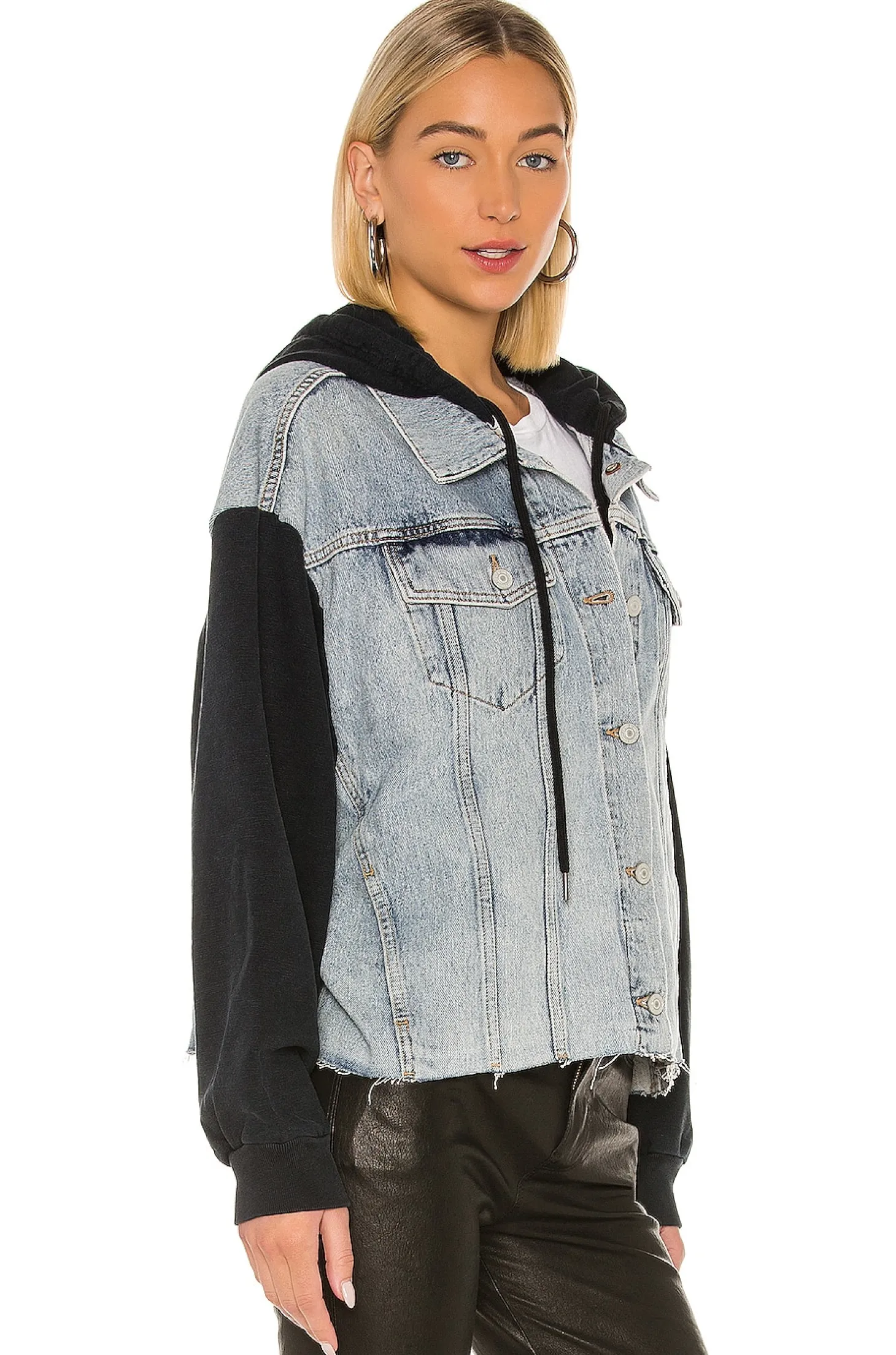 100% cotton.Light fading and distressed detail.Front button closure.Buttoned flap pockets and side welt pockets.Drawstring hood.Raw cut hem.Fleece panels.Made in Turkey