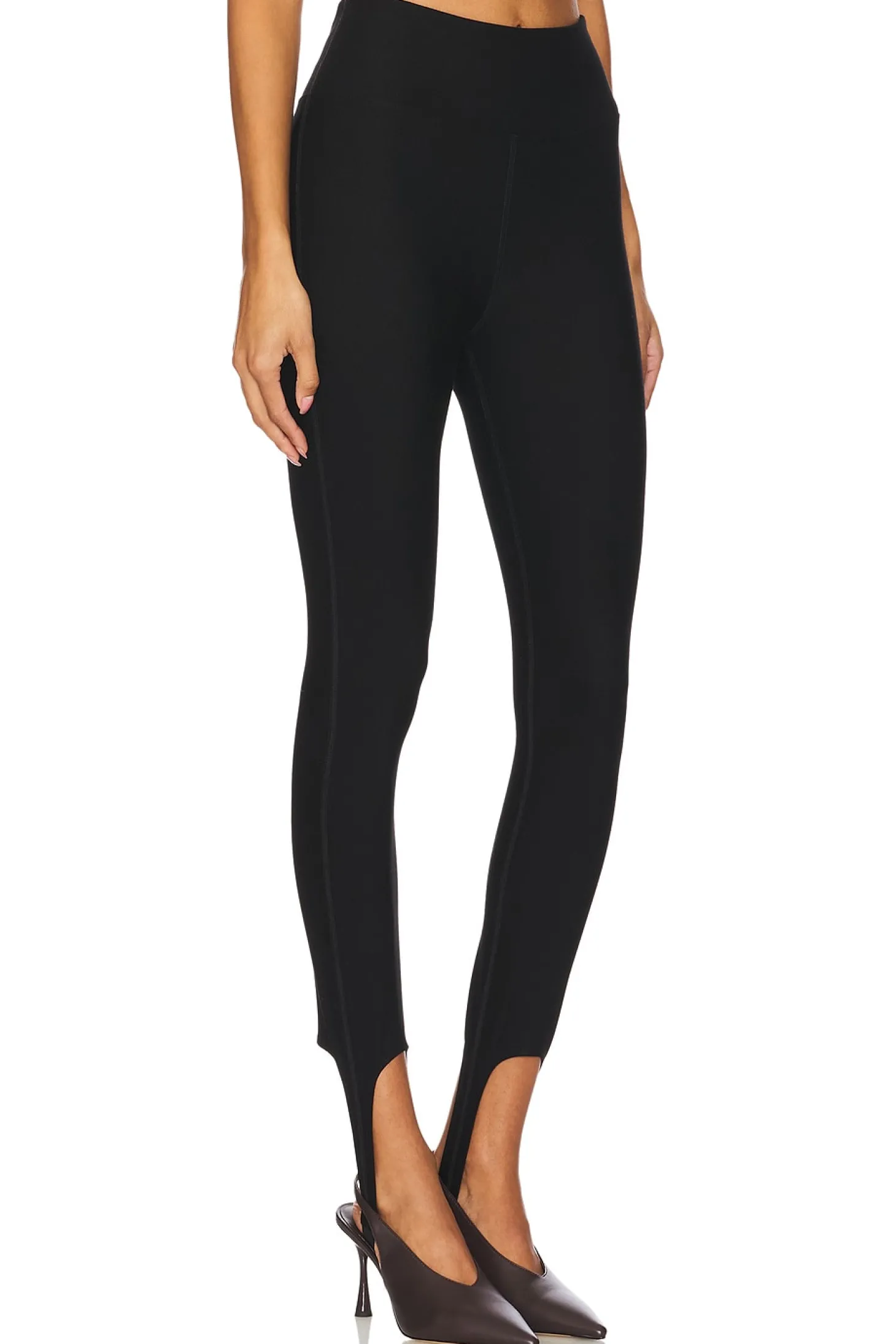 70% rayon 26% nylon 4% spandex.Made in China.Machine wash.Pull-on styling with stretch waistband.Tapered leg with stirrup hem.Stretch jersey fabric.12" at the knee narrows to 10" at the leg opening