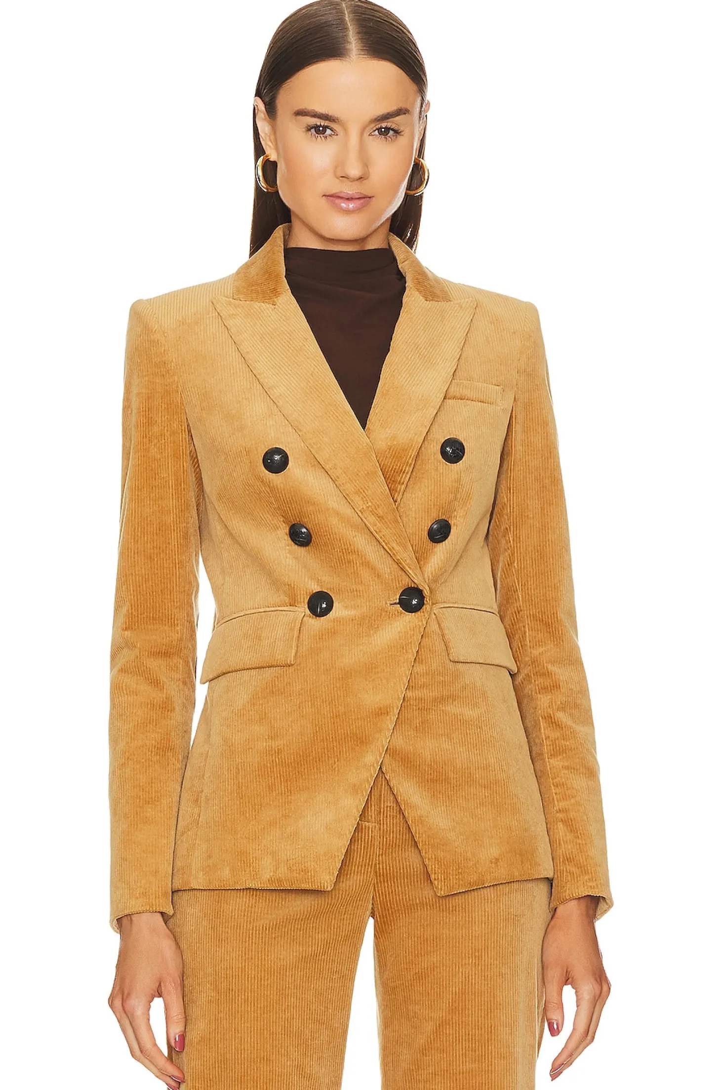 Cotton blend.Imported.Dry clean only.Double breasted front button closure.Front button accents.Padded shoulders Elbow pads.Buttoned cuffs Corduroy fabric.Item not sold as a set